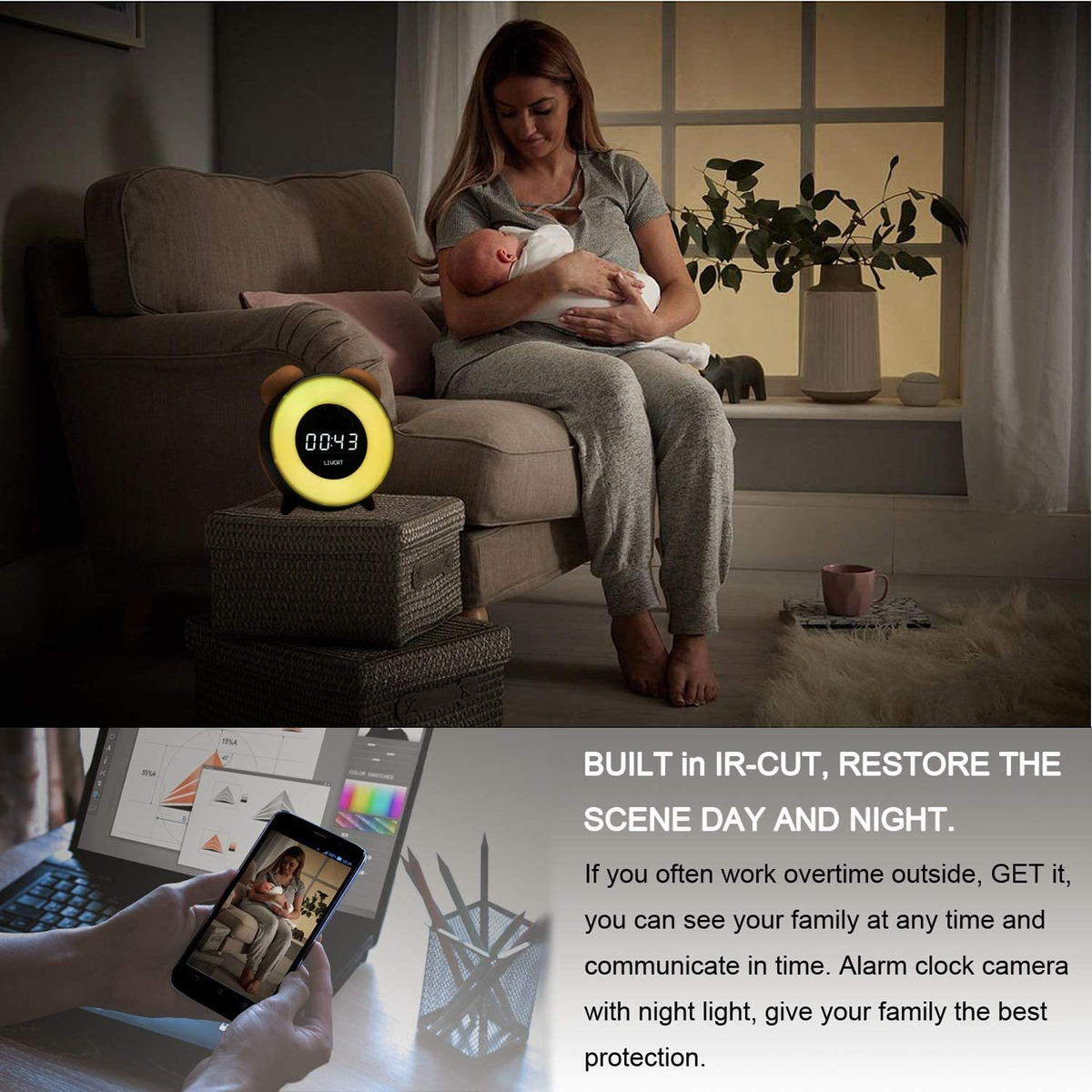 Cámara de Alta Definición 4K (IR-CUT Integrado): PUEDES conectarte al Teléfono móvil en la monitorización en Tiempo real, las Capturas de Pantalla, el vídeo, por Lo que no te perderás Ninguna imagen y fragmento. La Tecnología IR-CUT Garantiza Que la Calidad de Vídeo es La Misma Que La que los ojos ven todo el dia .; Deteccion de movimiento y alarma Push registro: Su Teléfono Celular recibira Una notification empujar Una Vez Que se activa la ONU movimiento,: Al mismo tiempo Que la Cámara espía tomra Una foto. Si Configura la Grabación de alarma, la Cámara espía Llevara ONU corto vídeo a la Tarjeta Micro SD .; Luz nocturna colorida: luz nocturna LED Que cambia de color, del atardecer al amanecer, Decoración del hogar, Niños Pará, ideales DORMITORIO para, Guardería, Cocina, Sótano. La Aplicación PUEDE Personalizar El Tiempo de inicio y Apagado .; Tiempo automático y despertador: La Hora locales se sincronizará automaticamente Despues De Que la Cámara Esté Conectada Con La Aplicación Móvil. La configuration del reloj despertador es familiarizado con la configuration del reloj despertador de Teléfono móvil, Que PUEDE Recordar y supervisar eficazmente a los Niños para Levantarse, HACER SUS Deberes, trabajo y vida .; Protege la Familia y la propiedad personal: Nuestra Cámara espía oculta te permite Vigilar a tu pareja infiel, Niños, Casero, alojador, el compañero de piso, niñeras, Cuidadores, Padres mayores o Empleados en casa, dormitorio, hotel, albergue, trabajo, oficina , hospital o any Otro lugar Cámara con luz nocturna y despertador Todos nuestros productos estan en inglés SKU 7042104574