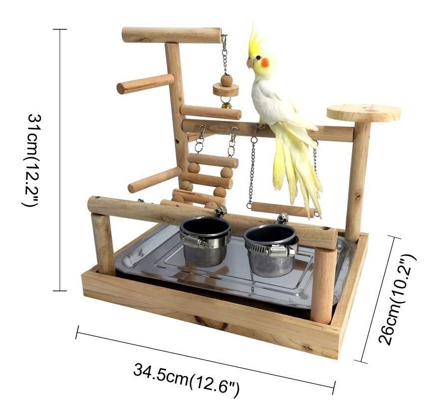 LMRi pet soporte para las Aves-pájaro del loro Playstand Juego Escala del soporte del Cockatiel de juegos de madera perca Gimnasio Parque infantil con el alimentador Copas Juguetes ejercicio juegan ¿De madera, estable, robusto¿ loro -La LMRi mascotas playstand es de madera, y todas las partes están conectadas con tornillos, no glue.This manera, el gimnasio juego de aves es más fuerte y más estable .; ¿Segura, duradera, ALTA CALIDAD¿-Nuestro soporte de aves juego es totalmente hecho a mano, sin ninguna barra de madera tóxicos materials.The no pinta pigmento venenosa o cualquier otra cosa, sólo mantener la nota natural y original.Plz, es necesario montar el pájaro se destacan por sí mismo, y la imagen es el montaje en el paquete .; ¿APTO para periquitos gris africano cotorras Cockatiel cacatúas Parrotlets Finch¿ -La barra de madera ‘s diámetro es de 0,7 PULGADAS, puede hacer referencia a estos datos antes de comprarlo para ver si es adecuado para sus aves .; ¿Playgym IMPRESIONANTE DE DIVERSIÓN¿ juguete -bird es muy divertido y proporciona una estimulación para su pájaro juguetes de colores mental y physically.Brightly apelan a la fuerte juguete vista capabilities.Bird del ave también ofrece muchas áreas de percha y la escalera de ejercicio adicional opportunities.When mantenerse lo Animales loros necesitan tiempo fuera de su jaula para jugar, hacer ejercicio y para interactuar con su companions.PLZ humana NOTA la dimensión de tamaño, si sus aves son demasiado grandes, por favor elegir nuestro otro soporte de madera más grande .; ¿¿ NUESTRO COMPROMISO barra de madera de calidad -Alta, conexión tornillos hacen que sea totalmente seguro para sus aves, juguetes de colores atraerán a sus aves para llegar a la parte superior para mantenerse en forma. El paquete incluye todas las partes de soporte de aves, incluyendo tornillos, una bandeja, una escalera, juguetes de swing y tazas de agua Todos nuestros productos estan en inglés SKU 24041908757