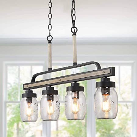 Luz pendiente de madera; Importado; Lámpara colgante de cristal Colorido párrafo comedor. Iluminación sencilla de isla lineal, especialmente diseñada para iluminar El corazón de tu cocina, comedor o Lugares De Estilo Granja. Hecho de metales en pintura gris profundo y Acabado rústico de madera sintética, Este diseño Cuenta con 4 tarros transparentes Que se caen desde la base de lineal de Aspecto de madera .; Instalación sencilla: el paquete de colgantes de la isla de la cocina INCLUYE TODAS LAS piezas necesarias de Montaje e instalación junto con los cables claramente Marcados. Tener Una experiencia anterior y algunos adj Conocimientos eléctricos deberian Ser suficientes para calificarlo Para Hacer La installation Por Si Mismo en Lugar de la ONU Contratar un electricista y Gastar mas dinero .; Altura ajustable y personalizable: Equipado con 2 Cadenas de 59,1 en, this lámpara de granja Se Puede Ajustar de 67 a 83,9 en el pecado Como utilizar Herramientas o piezas ADICIONALES .; Dimensión ideales para VARIOS techos: Toldo rectangular: 11 x 4.7 x 1 Pulgadas. Cadenas ajustables: 59 Pulgadas. Marco de metales: 30 x 25.5 Pulgadas. Sombra de tarro por Mason: 3.9 x 6.7 Pulgadas. This lámpara de araña rústica es compatible con todos los Tipos de techo, incluyendo techos planos, inclinados inclinados Y .; Totalmente regulable y Requiere bombillas: esta lámpara colgante Funciona Con Un interruptor de atenuación compatible (no incluido) y Requiere 4 bombillas E26 de Máxima de base de 40 W (no incluídas). Todos nuestros productos estan en inglés SKU 21052009910