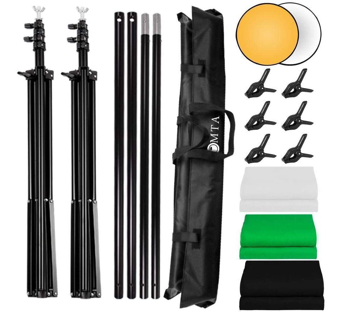 Soporte de fondo de 6,6 x 9,8 pies: el Soporte de fondo this Hecho de Aleación de aluminio, Que es muy ligero y Duradero. Se Puede Ajustar Libremente el ancho (5 pies – 10 pies) y la altura (2.3 Pies – 6,6 pies). El trípode de Aleación de aluminio grueso es muy estable, INCLUSO Si Se utilizació, al aire libre, es estable y sin Se Mueve .; Fondo de 5.2 pies x 9,8 pies. El fondo verde Chromakey this Hecho de poliéster Mejorado, Que es Duradero Y Tiene Buen Sentido de la ONU vertical. La superficie de la Pantalla Verde (blanco, negro, verde) PUEDE AYUDAR un absorbente de la Luz y ELIMINAR los reflejos. Se Puede lavar y planchar .; 4 barras transversales: la barra cruzada this hecha de Aleación de aluminio, resistente y duradera, y PUEDE colgar Objetos Pesados de 6.6 lbs. Travesaño telescópico, Fácil de enlazar, Se Puede Instalar facilmente en 4 Minutos .; 6 clips de fuertes Resorte: El Fuerte Clip de resorte y la superficie rugosa pueden sujetar la tela de fondo firmemente en el Soporte de fondo. Se utilizació párrafo FIJAR muselina, lienzo, papel, clips de fotos, etc. El clip de this Hecho de Materiales de Alta Calidad para proporcionar la ONU agarre Cómodo y firme y Evitar Que El fondo se deslice .; Kit de Soporte de telón de fondo: 3 x 5,2 x 9,8 pies / 5.2 pies x 9,8 pies fondo de Teclas cromadas (negro, blanco, verde), 2 x 6,5 pies / 6,6 pies Soporte de fondo, 4 x travesaños, 1 x 23 Pulgadas / 23.6 en 2 en 1 reflector, 6 x clips de boca de pez (negro), 1 x bolsa de transporte. El telón de fondo es muy ADECUADO para Youtube, Tik Tok y Otras Sesiones de vídeo, maquillaje, fiesta de cancha, boda. 6.5x10ft / 2x3m Fotografía Chromakey Verde Pantalla Fondo Kit de Sistema de Soporte