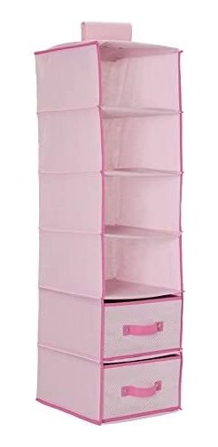 Los niños Delta 6 Estante de la pared de colgante de almacenamiento y 2 cajones – Fácil almacenamiento / Organización Solución- Sostiene suéteres, camisas, pantalones, accesorios y más Inicio – Cajones móviles permiten la personalización, Rosa Tamaño: 1 Pack | Color: Apenas rosa