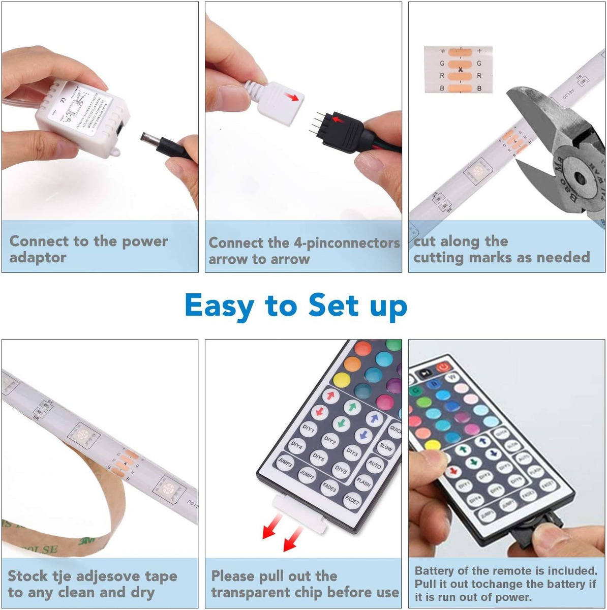 Control remoto IR de 44 Teclas: tira flexibles de luces de colores: 16 colores y luz diurna. Entrada: 12 V cc. Corriente: 2 A. Máximo 8 patrones de luz: Rápido, lento, automático, flash, 7 Cambios de Color de decoloración, 3 Cambios de Color de desvanecimiento, 7 Cambios de Color de Salto, 3 Cambios de Color de R / G / B Aumento Y CONTROL DE DESMINUCIÓN. 6 TECLAS DE BRICOLAJE. Consulte el manual de en inglés para Obtener ONU Funcionamiento Detallado estafadores 44 Teclas de control de infrarrojo Que Tiene 6 Teclas (PUEDE Hacerlo Usted Mismo). claves) Para Las Mamás Los Colores Que Preferías.; Cortable y enlazable: las luces de colores se pueden cortar facilmente y unir con Otras tiras de luces LED, y la tira de cinta de luz Se Puede cortar un lo largo de las Marcas de corte. Por lo Tanto, PUEDES mezclar y combinar las longitudes y TAMAÑOS de tu elección realizada, táctil y seguro Para los niños .; IP65 impermeables Y Duradero Las luces LED de cinta impermeable utilizan chip de ONU LED brillante y de alta Calidad Que permite Que las Luces LED sean muy Coloridas duraderas y. Utilizació de material de silicona, textura suave, buena dureza, y sin Es Fácil de Danar, PUEDES doblarte en forma any Que desees. Asegurese de Que Cada Interfaz ya esta Conectada, La Tira de luz comenzará a funcionar; Amplia Aplicación: Voltaje de Funcionamiento de la Cadena de luz Que cambia de es de color de 12 V, la potencia es Extremadamente Baja, La vida es de Más de 50.000 horas, Ahorro de Energía y Protección del Medio Ambiente, ampliamente utilizado en Decoración de Iluminación interior y exterior, Como cocina, armarios, restaurantes, dormitorios, patios, Computadora, Escritorio, Luz de fondo de la televisión, bodas, etc. Nota: Cuando Se utilizació, por favor, desenchufa la hoja aislante trasera del mando a distancia .; Garantía de Satisfacción: Cada article Que COMPRO en WAROM PUEDE Disfrutar de 12 meses de garantía f, 30 Días de Garantía de devolución de dinero. Nuestro amable servicio al cliente siempre this Detrás de Nuestro producto y Responde a todos los correos Electrónicos en 24 horas. Especificaciones Básicas del producto: