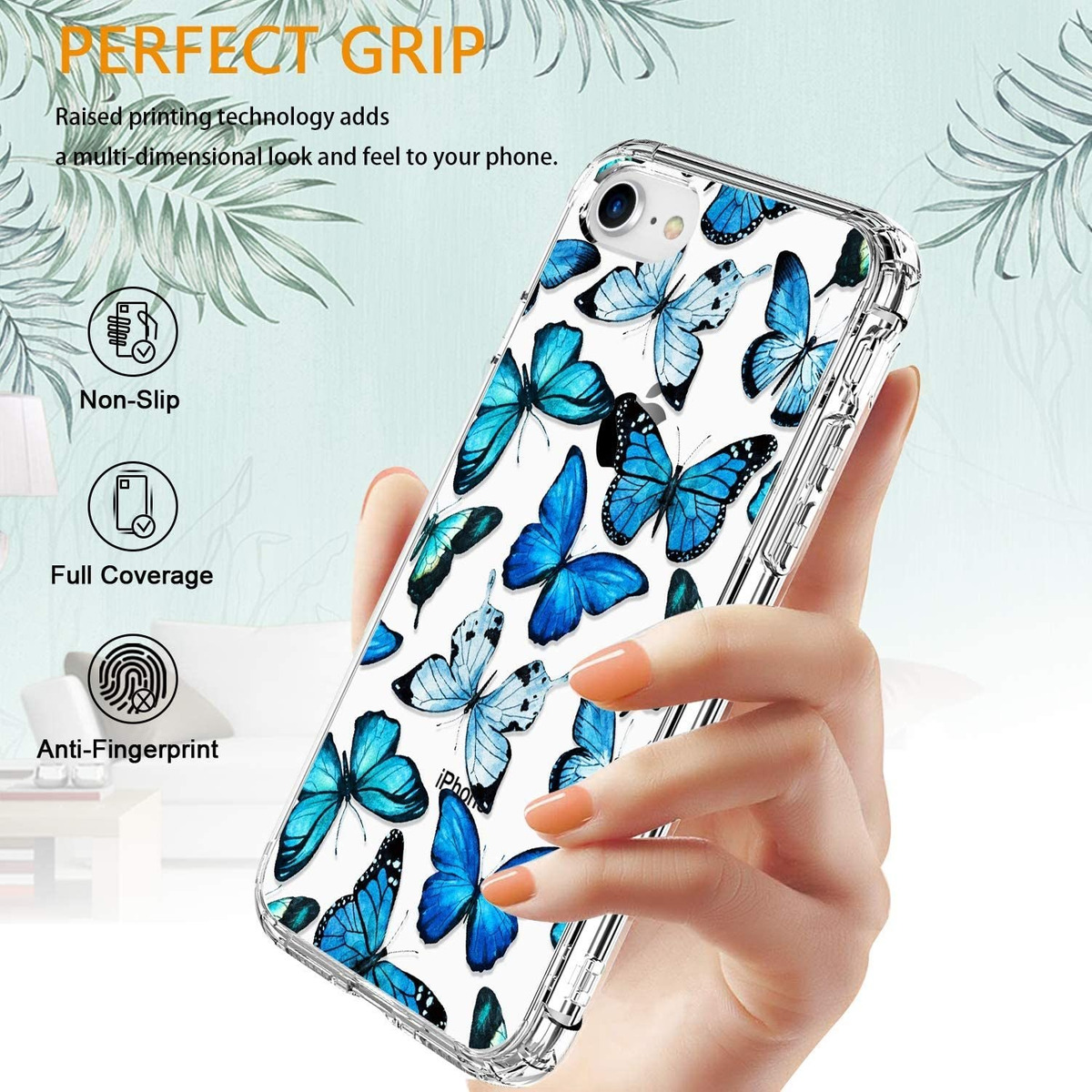 Especificaciones: Luhouri – Funda Para iPhone 7/se, Flor Floral Azul Mariposas