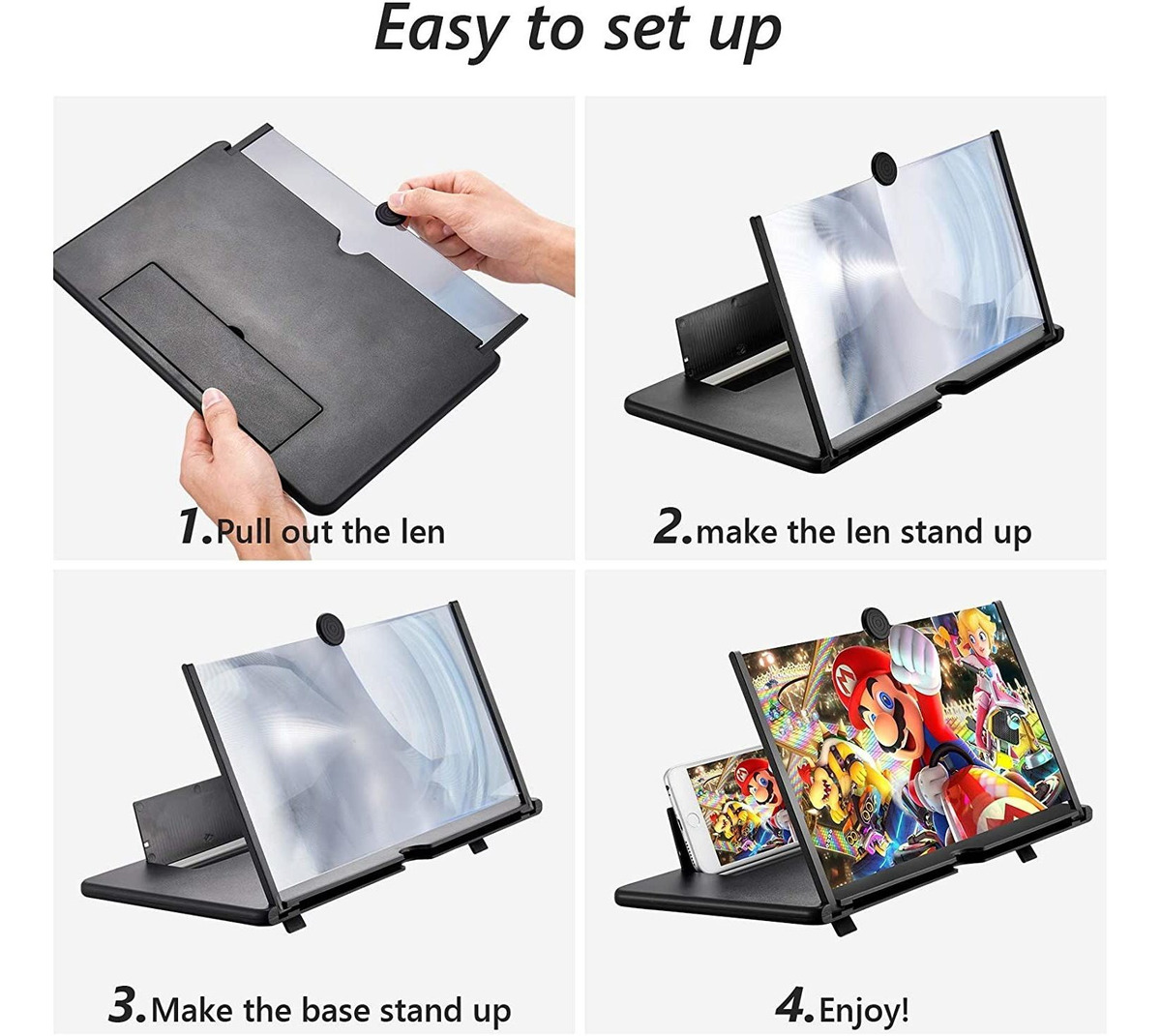 Cada vez más personas se sienten increíblemente incómodas al ver una pantalla pequeña durante períodos de tiempo más largos cuando utilizan sus teléfonos inteligentes para ver videos o películas. Incluso puede dañar su visión y causar fatiga visual y molestias en los ojos al enfocarse en una pantalla pequeña durante mucho tiempo. Si quieres proteger mejor los ojos de uno mismo, quieres un efecto de visualización de pantalla más grande, entonces nuestra lupa de pantalla de smartphone es perfecta para ti!