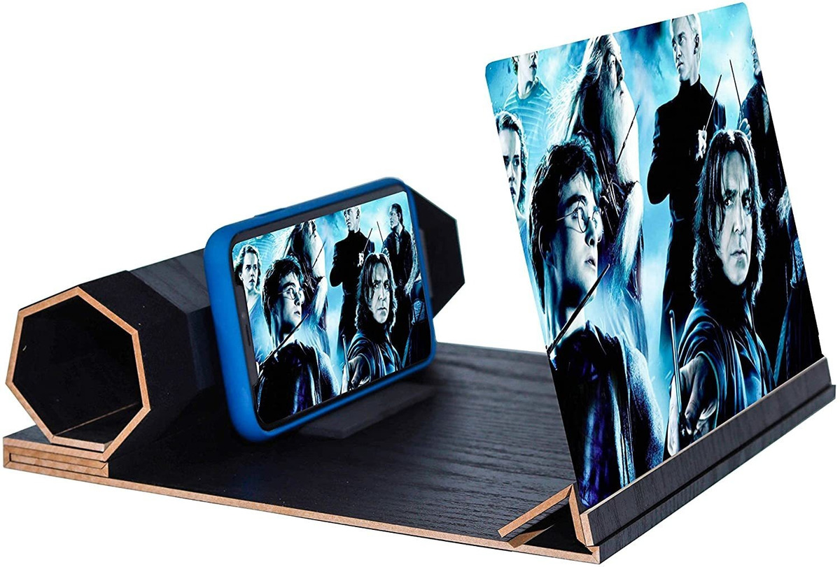 Protege tus ojos: nuestra pantalla de alta definición te proporciona una experiencia de visualización perfecta. Ayuda a aliviar cualquier molestia y fatiga visual que pueda experimentar al centrarse en pantallas pequeñas durante largos tiempos.; Ligero: nuestro soporte para teléfono móvil es muy fácil de llevar. Es tan delgado cuando está plegado y lo más importante, adecuado para interior, camping, turismo, ocio y otros lugares. Disfruta del proyector de teléfono inteligente con manos libres mientras usas nuestra nueva y elegante lupa de pantalla.; Soporte para teléfono celular: diseñado con lupa y compatible con teléfono Android y iPhone. La lupa de pantalla fuerte que funciona como una pantalla de proyector de teléfono. Duplica eficazmente el tamaño de tu pantalla.; El mejor regalo: diseño de proyector inalámbrico simple y elegante para hacer de este producto tu mejor elección de regalos de vacaciones para tus amigos o seres queridos, puede ser un regalo y más adecuado para los ancianos viendo películas y noticias. Es el mejor accesorio para teléfono móvil para dar como regalo.; La calidad perfecta y el ajuste ideal: hemos diseñado el amplificador de pantalla de soporte de nuestro teléfono inteligente utilizando la mejor madera maciza de alta calidad para garantizar la durabilidad de su dispositivo. Nuestra pantalla de teléfono 3D es compatible con todos los tipos de teléfono. Consigue el tuyo hoy y pruébalo por ti mismo. Por cualquier razón si no estás satisfecho, garantizamos tu reembolso completo lo antes posible. Color:Negro