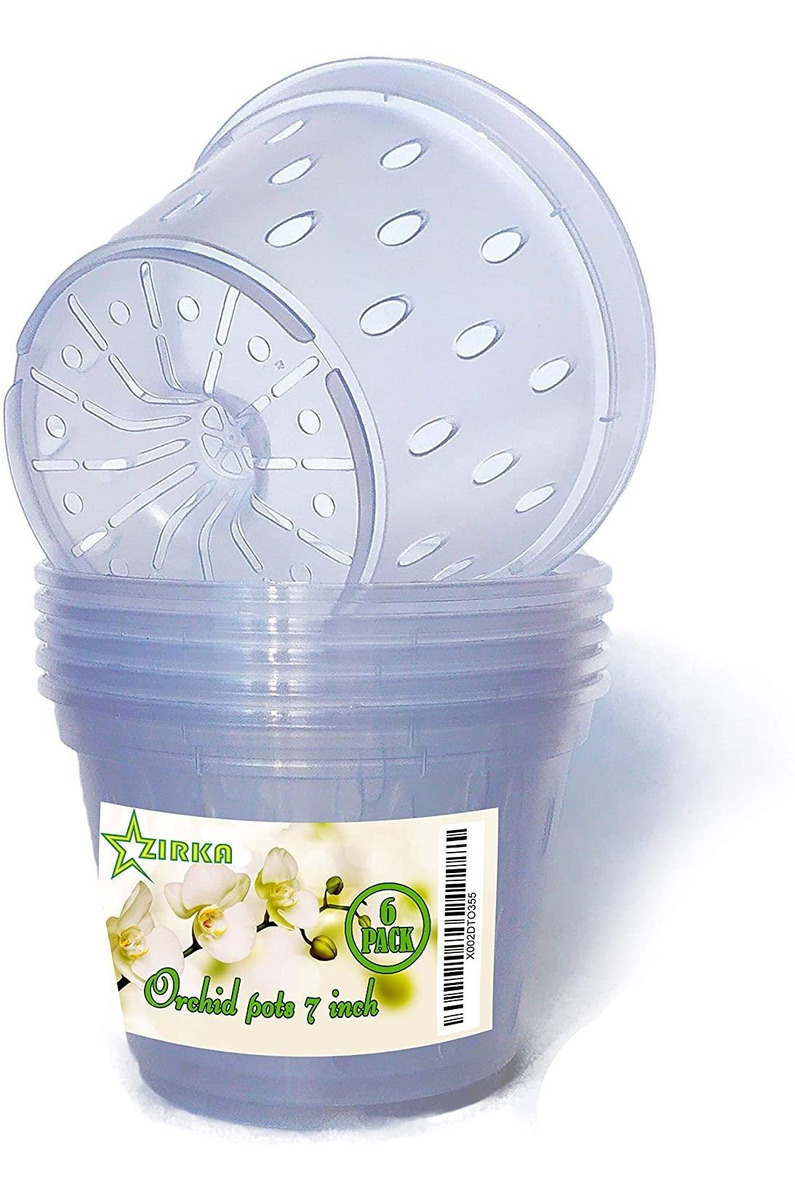 Las macetas para orquídeas con agujeros proporcionan suficiente descarga de humedad y una buena circulación del aire interior.; La maceta transparente para orquídeas permite que las raíces de la orquídea reciban los nutrientes que necesitan para crecer de la luz y el aire.; La maceta transparente para orquídeas permite observar el estado de las raíces y la humedad del sustrato.; Las macetas de plástico para orquídeas te permiten cambiar macetas decorativas en función de tu interior sin dañar la planta.; Macetas de plástico transparente para orquídeas. Tamaño: 6.7 in de diámetro en la parte superior; 4.5 in de diámetro en la parte inferior; 5.0 in de altura. Tamaño:7 inch (6 Pack)