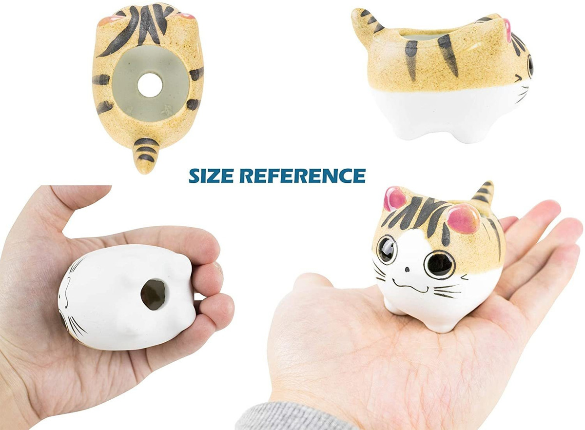 Amo tanto a mi gato. Amas a tu gato tanto como a mí Si lo haces, estas macetas suculentas mini gato son la elección correcta para ti. Son muy lindos, y puedes plantar mini o pequeñas suculentas o cactus en estas lindas macetas para gatos. Cada maceta de gato suculenta tiene su propia emoción por la felicidad, la tristeza, la sorpresa, la calma, la risa y la sonrisa. Absolutamente una decoración perfecta para interiores y exteriores.