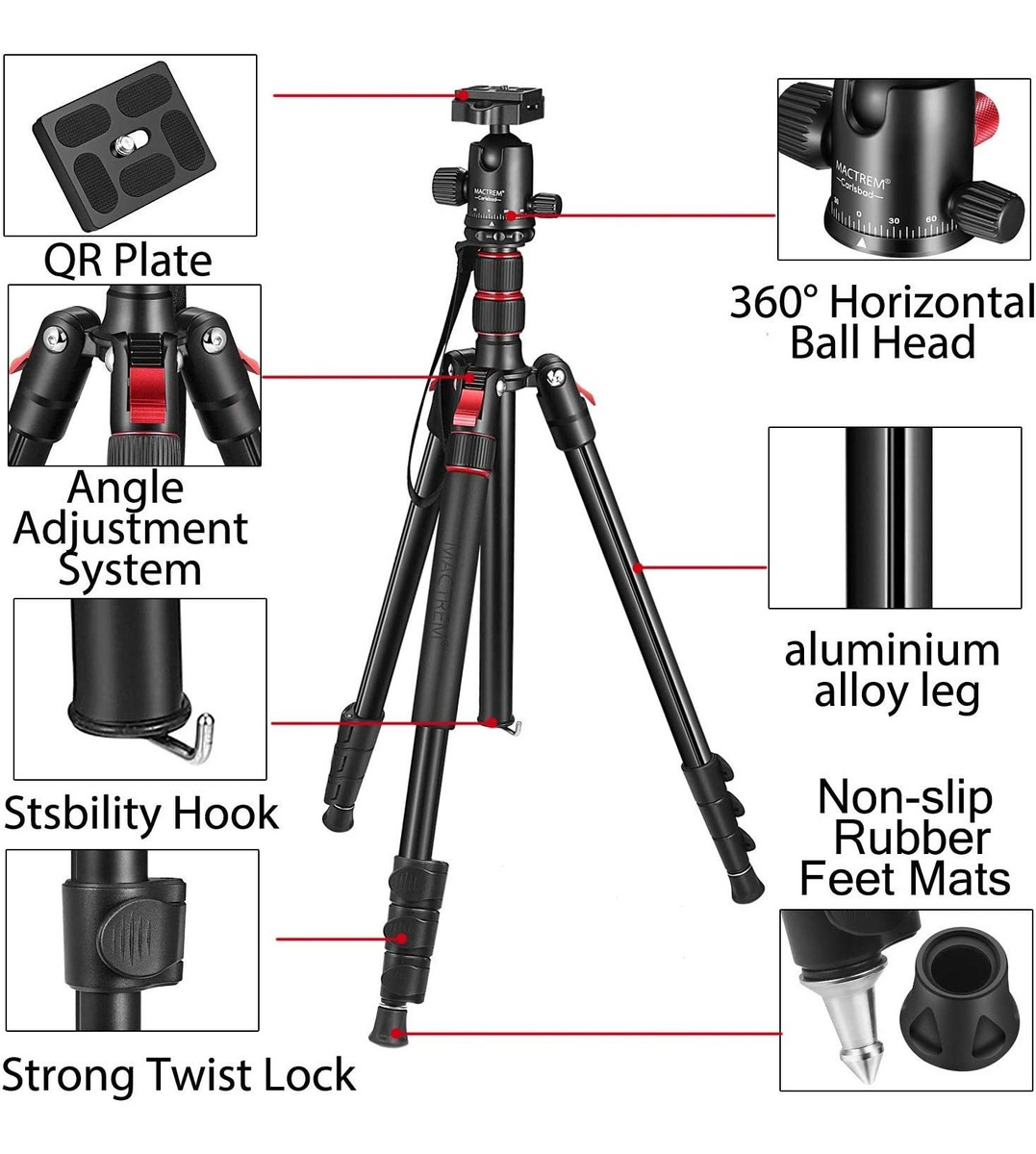 Especificaciones: Mactrem Trípode De Cámara De 80 Pulgadas, Trípode Dslr Viaje