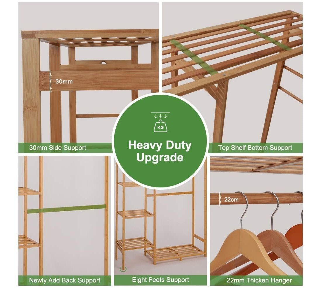 Especificaciones: Madera De Bambú Ropa Estante De La Ropa Con Estantes Ropa Qu