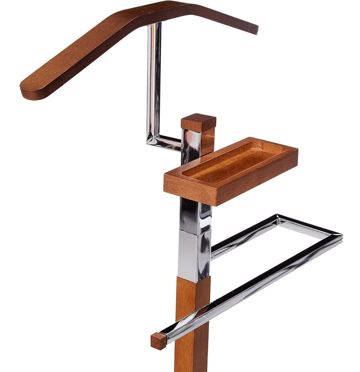 Reyes Marca Chrome / Tabaco moderna de madera y metal Traje Servicio de soporte del estante organizador .; Proporcionar un lugar único para la ropa para colgar con esta madera de color marrón tabaco y servicio de aparcacoches acabado de metal .; Perfecta para entradas o dormitorios, la madera pulida diseño de esta ayuda de cámara es seguro para que coincida con su estilo a la vez que proporciona una percha chaqueta, sombrero de reposo, y el titular pantalones .; El simple montaje requiere .; Dimensiones: 18 x 8 x 44H. Todos nuestros productos estan en inglés SKU 6102028492