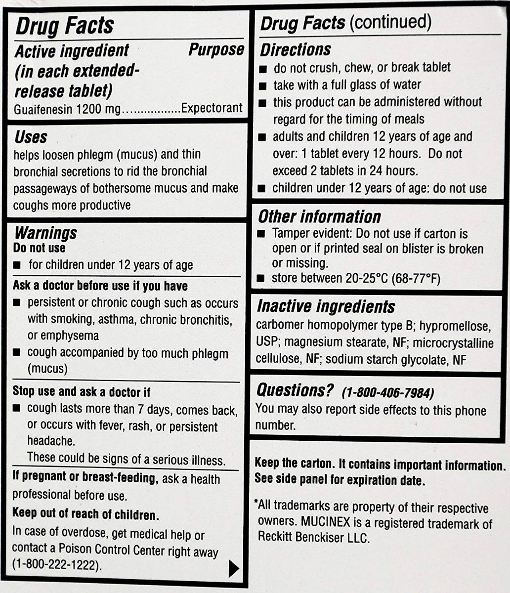 Alivia la congestión del pecho .; Adelgaza y afloja el moco .; 1200 mg guaifenesina en cada tableta .; Hecho en Inglaterra.; Tamaño: 56 comprimidos de liberación retardada. Marcos moco máximo alivio 1200mg Fuerza guaifenesina de miembros, 56 comprimidos Todos nuestros productos son de Estados Unidos SKU 23111814109