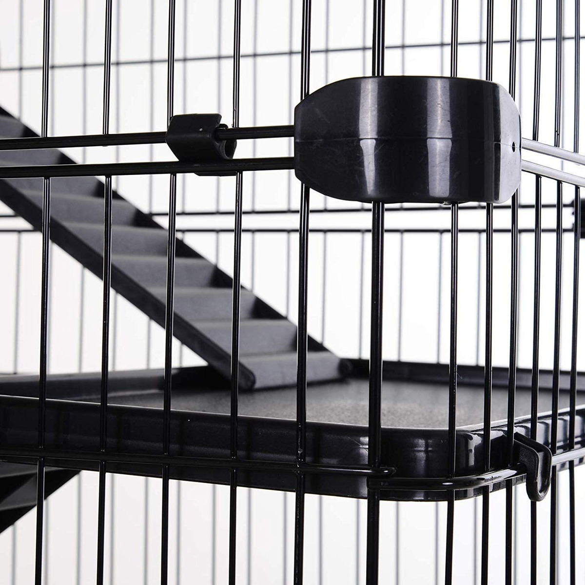 Lujo Y Espacioso: Grandes Dimensiones: 32 pulgadas de largo x 21 pulgadas de ancho x 58 pulgadas de alto; 6 pisos; JAULA ESPACIOSA PROPORCIONA ESPACIO PARA INCLUSO Las Mascotas MÁS ENERGÉTICAS; Elegante Negro, Blanco y gris Colores es ideal para tu pezeño animal; Comodidad: Fácil de Limpiar; Desliza la Bandeja Inferior de Plástica; La Protección de Orina Mantiene Tu Hogar Limpio Y La Malla Inferior De Plástico Te Mantiene La Salud de Tu Mascota; CUATRO ABERTURAS, UNA EN LA PARTE SUPERIOR Y TRES EN LA PARTE DELANTERA PARA UN FÁCILO ACCESO A LA JAULA; 4 Ruedas Universales con FRENOS PARA MOVERTE FÁCILMENTE ALLEDEDOR DE TU CASA O PATIO.; Espaciado de la Barra: 0.9 pulgadas de espacio de alambre; TAMAÑO DEL ALAMBRE DE METAL: 0.78 PULGADAS Y 0.13 PULGADAS; Para CONEJOS DE COBAYA, Chinchilla, Hurón, Ardilla, Erizo, Conejo, Gatito …; Fácil de Instalar: No Necesita Herramientas. Fácil de Enganchar en Conectores de Jaula y Ruedas.; Diseño Seguro Y Amigable: 5 Plataformas de Plástico Sólido Con Rampa Antideslizante, Seguro Para Las Patas; Cerradura de Seguridad para Puerta Delantera. Fácil de límpiar. Para Conéjos de Indias Chinchilla Herrón Ardilla Erizo Conejo Gatito … Todos nuestros productos estan en inglés SKU 10032235934