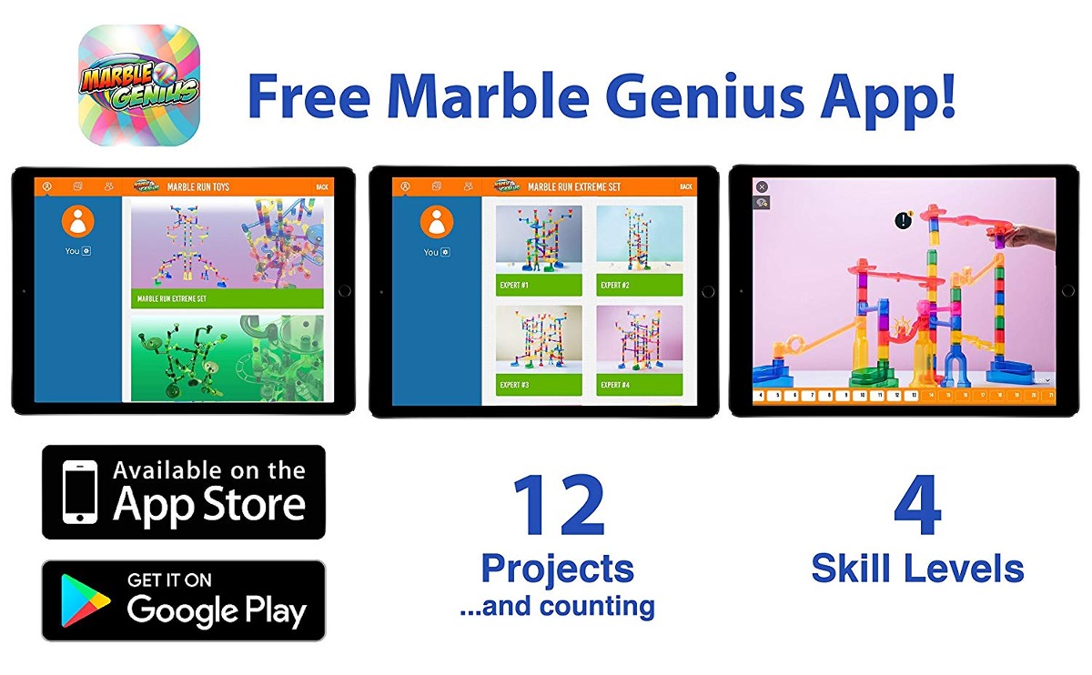 125 piezas ver a través de ejecución de mármol le permiten ver toda la acción; piezas plásticas en forma sólida que se pegan juntos y son fáciles para que los niños jueguen con; 42 piezas de acción y 9 bases sólidas para garantizar el máximo disfrute; Canicas de juguete, tamaño estándar (5/8 pulgada o menos) trabajan con este conjunto (20 Mármoles de cristal Incluido); Compatible con Marbulous mármol Run Juguetes incluyendo nuestro Genius Mármol Mármol Run Starter Set (60 ud.), Super Set (85 ud.), Booster Set (20 ud.), Y 9 juegos de accesorios Todos nuestros productos son de Estados Unidos SKU 8111831448