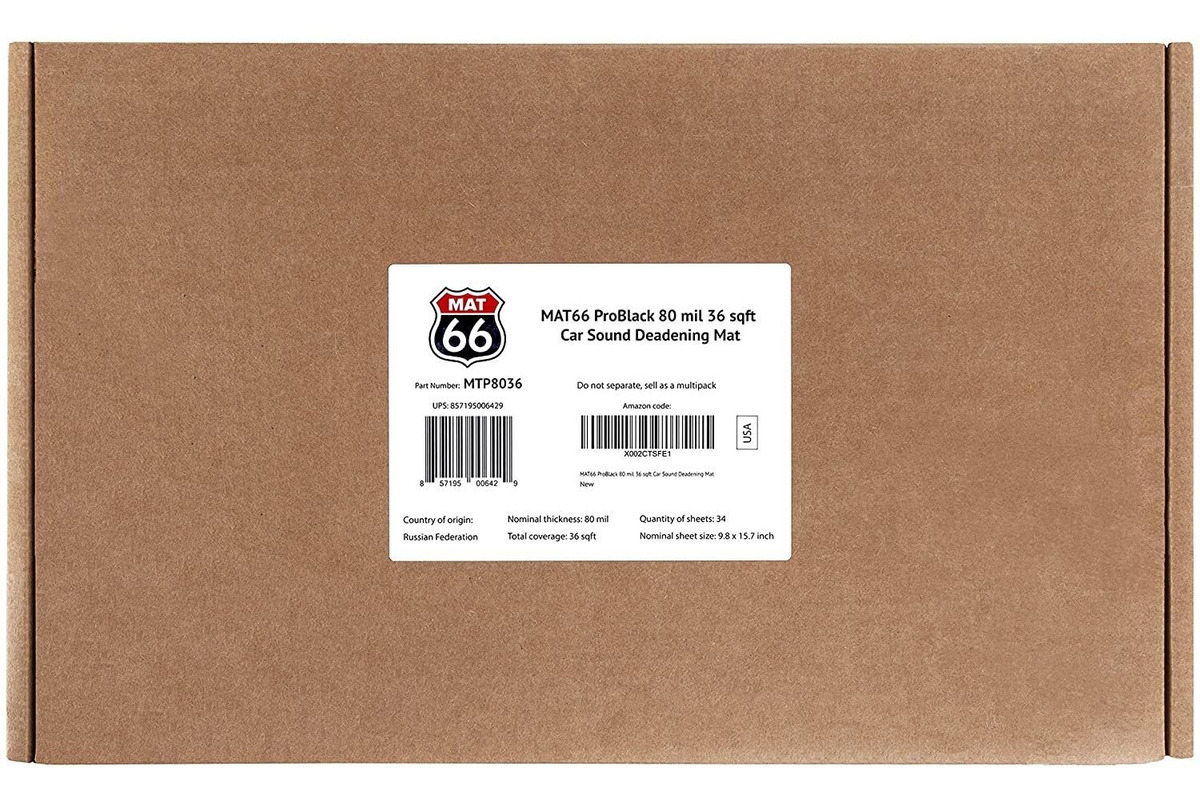 El amortiguador de sonido de butilo y lámina rentable de 80 mil. No solo estás comprando un producto de excelente calidad, sino que también ahorrarás más del 20% en comparación con los competidores; Ahora el material es 1,5 veces más grueso, lo que te dará un aislamiento 1,5 veces más eficaz. MAT 66 80 mil es 1,5 veces mejor en comparación con el material amortiguador de sonido de 50 mil. Cuanto más grueso sea el material, más rendimiento obtendrás; Aislamiento autoadhesivo automotriz compuesto de butilo. La alfombrilla de amortiguación de sonido MAT 66 tiene un peso total de 0.5 libras/1 pie cuadrado. Este peso garantiza la máxima eficiencia y aislamiento acústico que posiblemente se puede obtener de material de 80 mil de grosor. MAT 66 ProBlack 80 mil es un material ligero que amortigua el sonido; El aislamiento de coche MAT 66 tiene un indicador especial de si está instalado correctamente. El relieve especial en la lámina debe ser enrollado con un rodillo hasta que sea liso, entonces estarás 100% seguro de que la insonorización se establece correctamente y profesionalmente. El material de amortiguación de sonido viene en hojas de tamaño práctico que hacen que sea más fácil en términos de proceso de corte e instalación; Especificaciones del material amortiguador de sonido: grosor nominal 80 mil; área de cobertura total de 36 pies cuadrados; número de hojas en la pila 34; tamaño nominal de la hoja: 15.7 x 9.8 pulgadas. Rodillo no incluido. Todos nuestros productos estan en inglés SKU 4022203172