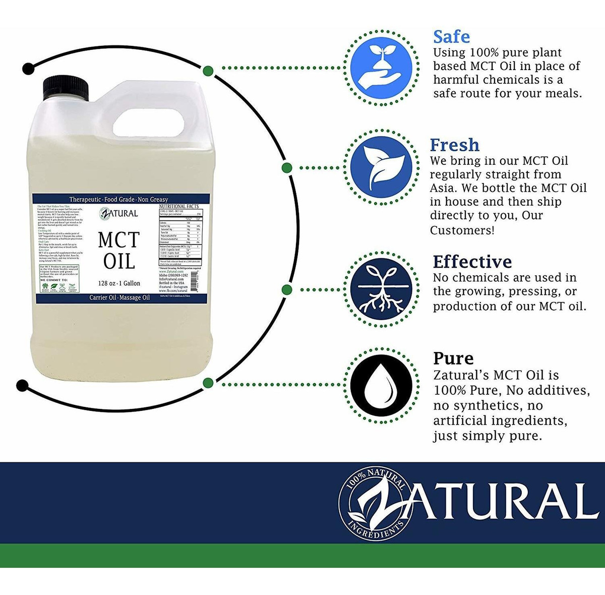100% Aceite de MCT (triglicéridos de cadena media) Aceite de Zatural- terapéutico y calidad alimentaria; Para la piel: acné, grasa no Aceite de masaje, desmaquillante, hidratante, Assist con el envejecimiento de la piel; Para el cabello: Hidrata el cuero cabelludo y el cabello, caspa Sida, da brillo al cabello, ayuda a fortalecer el cabello .; PARA LA SALUD: hipoalergénico, rico en antioxidantes, rico en ácidos grasos esenciales, tiene un bajo punto de humo por lo que es un aceite de baja temperatura. Puede ser utilizado para tirar oral Aceite Care_. Cargado con C8 ácido caprílico, ácido cáprico C10, y C12 ácido láurico; Aditivos: 0 embotellada en los EE.UU. Todos nuestros productos estan en inglés SKU 4091919702