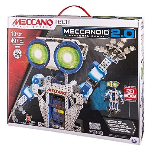 Cumplir con su robot interactivo personal Meccanoid 2.0! Construir Meccanoid, que se sitúa 2 pies de altura, con las herramientas reales incluidos y piezas de plástico y de metal duradero. Este robot personal cuenta con 6 motores para el brazo realista, la mano y el movimiento de la cabeza, los pies motorizados para que pueda moverse hacia adelante y hacia atrás, los ojos LED programable para más de 500 colores, e incluso el reconocimiento de voz. Meccanoid 2.0 tiene 3 maneras innovadoras para el programa: Learned Movimiento Inteligente (L.I.M.), el modo de Ragdoll, y arrastrar y soltar la programación a través de la aplicación Meccanoid descargado a un dispositivo inteligente (dispositivo no incluido). Además, Meccanoid sabe más de 3000 frases preprogramadas, cuenta historias, y sabe robot trivia. Meccanoid 2.0 es su nuevo mejor amigo robot. Construir su robot personal sobre 2 pies de altura, con 6 motores para el movimiento realista .; Meccanoid tiene 3 maneras innovadoras para programar y sabe 3000 + frases preprogramadas .; Su nuevo amigo robot cuenta con reconocimiento de voz y la comunicación dispositivo inteligente .; Meccanoid 2.0 es para las edades 10+ y requiere 4 pilas de tipo D (no incluido) .; Incluye 497 piezas, 1 Meccabrain, LED Módulo 1, 3 herramientas de mano, 4 servos, 2 conjunto de la rueda trasera, 2 Motor Gear Box Assembly, 1 cable USB SKU 20021832586