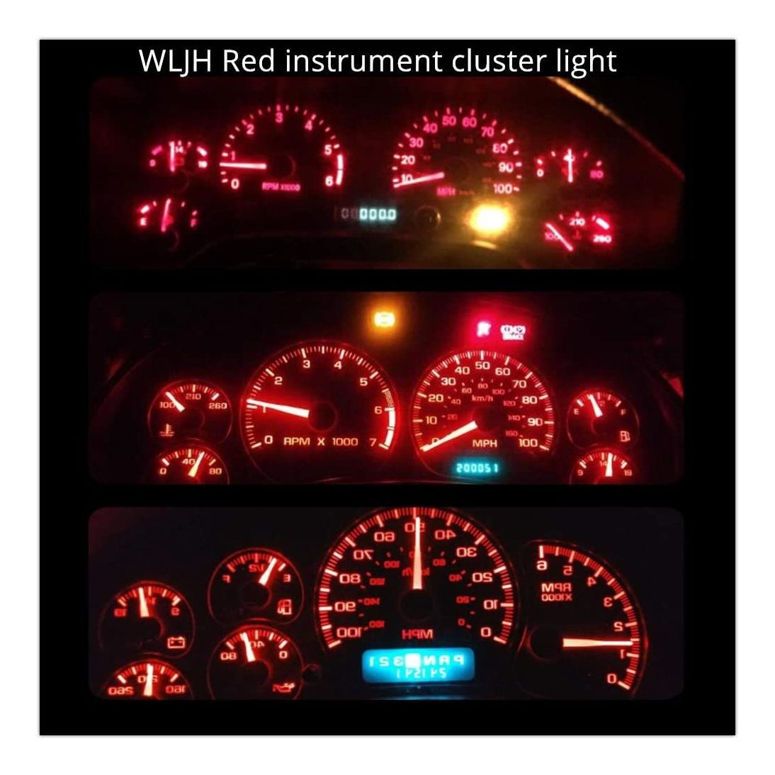 Vehículo FIT: Este galgas LEDs rojos completos kits de luz es especial para Jeep Wrangler YJ 1987 1988 1989 1999 1990 1991, 8pieces incluidos llevaron bombillas con tomas de torsión, reemplazados toda la luz guión original y el tacómetro y el velocímetro; Alto brillo: 1piece poderosa SMD 3030, 100lm, 12v, super luminoso, mucho mejor y más brillante que el chipset 5050 2835 1210 3014 3528 SMD LED, mejorar la legibilidad noche tiempo; Kits de guión completo: el paquete incluye bombillas para convertir todo la iluminación de fondo de la luz velocímetro, tacómetro luz, la luz indicador de temperatura, el combustible LED suficiente (gas) luz conjunto de indicadores, indicador de presión de aceite, luz de indicador, cambiar completamente la apariencia; Fácil instalación: Este enchufe y un kit de juego. No de soldadura! Retire la bombilla vieja con el zócalo viejo, poner el nuevo bulbo llevado en retorciendo los alambres alrededor de las hojas de metal en el nuevo socket torsión, Si el LED no hasta no luz, una simple rotación de 180 grados (invertir la polaridad); 100% Garantía de satisfacción: WLJH ofrece una garantía de 2 años para este producto, sin problemas en reemplazar, cambio o reembolso Color rojo