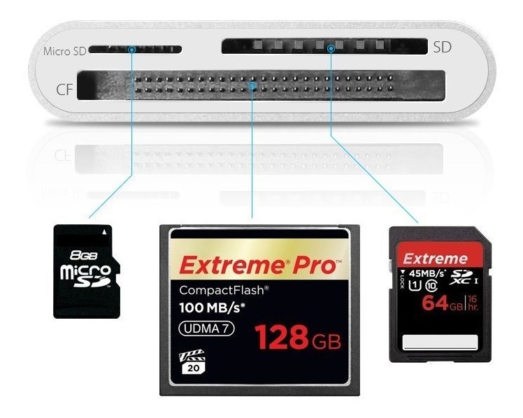 Con el triple ranura (Micro SD / SD / CF) lector de tarjetas de memoria, la transferencia de fotos de alta resolución y películas a su USB-C activada ordenadores portátiles en segundos