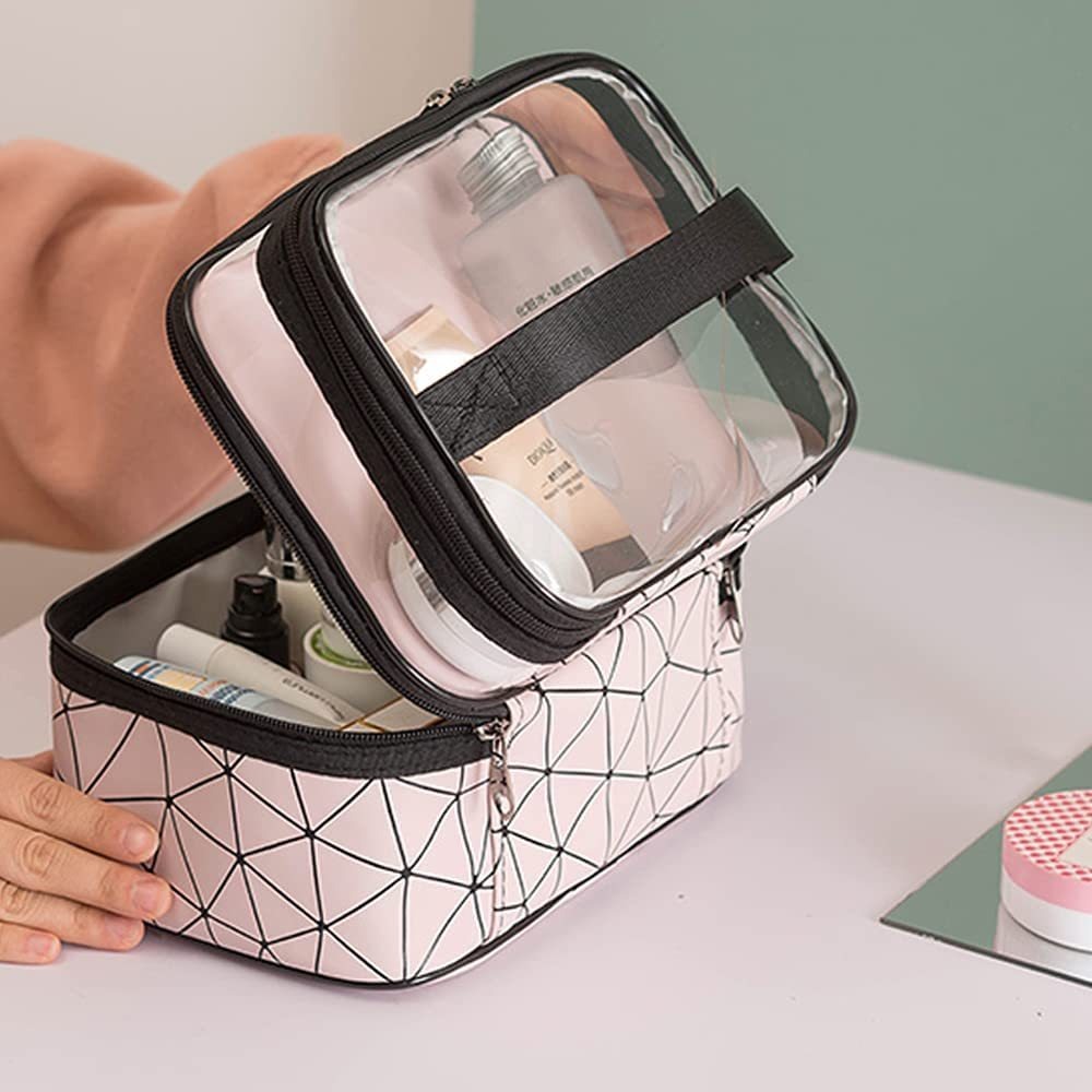 La CAPA superiores of this bolsa de cosméticos de doble capa this hecha de la tela transparente y el material, La Altura De La CAPA ES superiores de 1.96 Pulgadas. El tejido inferior, por Otro Lado, this made utilizando el material de la PU; La altura es de 3.96 Pulgadas. Diseño Innovador y Fácil de USAR. CUANDO viajas, this bolsa de maquillaje te traera Una gran COMODIDAD. También it amigos regalo párr Gran ONU, Mamas Colegas y.