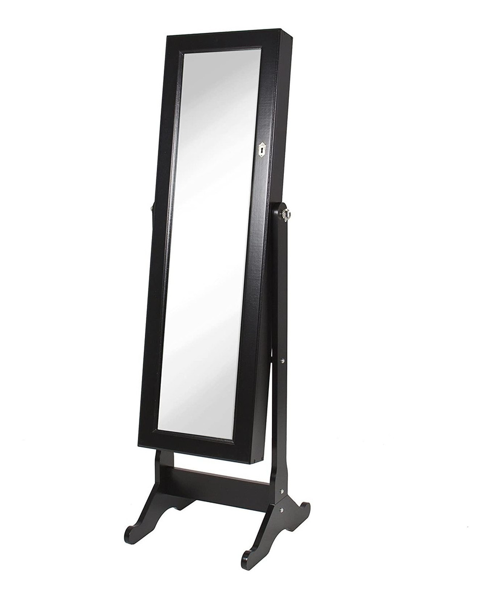 Ahorro de espacio nunca ha parecido tan buena! Esta joyería armario vitrinas lo más guapo de la habitación: usted! Su espacio vital recibe una actualización con este versátil, pieza multifuncional que añade innovación moderna a un clásico atemporal. Traer su espejo tradicional en el siglo 21 con esta joyería espejo armario. ESPECIFICACIONES: Dimensiones totales: 18 (L) x 16 (W) x 58 (H); Gabinete Dimensiones: 14,5 (W) x 4 (L) x 48 (H); Espejo Dimensiones: 43 (L) x 10 (W); Peso: 29,1 lbs .; Material: Madera, terciopelo; Incluye: Bloqueo, claves; De color negro; Some Assembly Required (con instrucciones) Velvet / 25%; Importado; DISEÑO ELEGANTE: espejo basculante (43 L) y armario de la joyería está diseñado con un exterior de madera maciza y un gabinete forrada de terciopelo; ARMARIO AMPLIO: gabinete de joyería incluye 48 ganchos collar, 2 cubículos, 7 estantes alineados, y 1 varilla de pulsera en. Además, puede almacenar hasta 64 pares de pendientes y 91 anillos; SEGURO y ALMACENAMIENTO SEGURO: Cuenta con una cerradura y llaves de joyería de protección, maquillaje, u otros accesorios; HASSLE la libertad de reunión: Montar en cuestión de minutos con las instrucciones incluidas y el hardware; general Dimensiones: 18 (L) x 16 (W) x 58 (H); Dimensiones de la cubierta: 4 (L) x 14.5 (W) x 48 (H) Todos nuestros productos estan en inglés SKU 6102016551