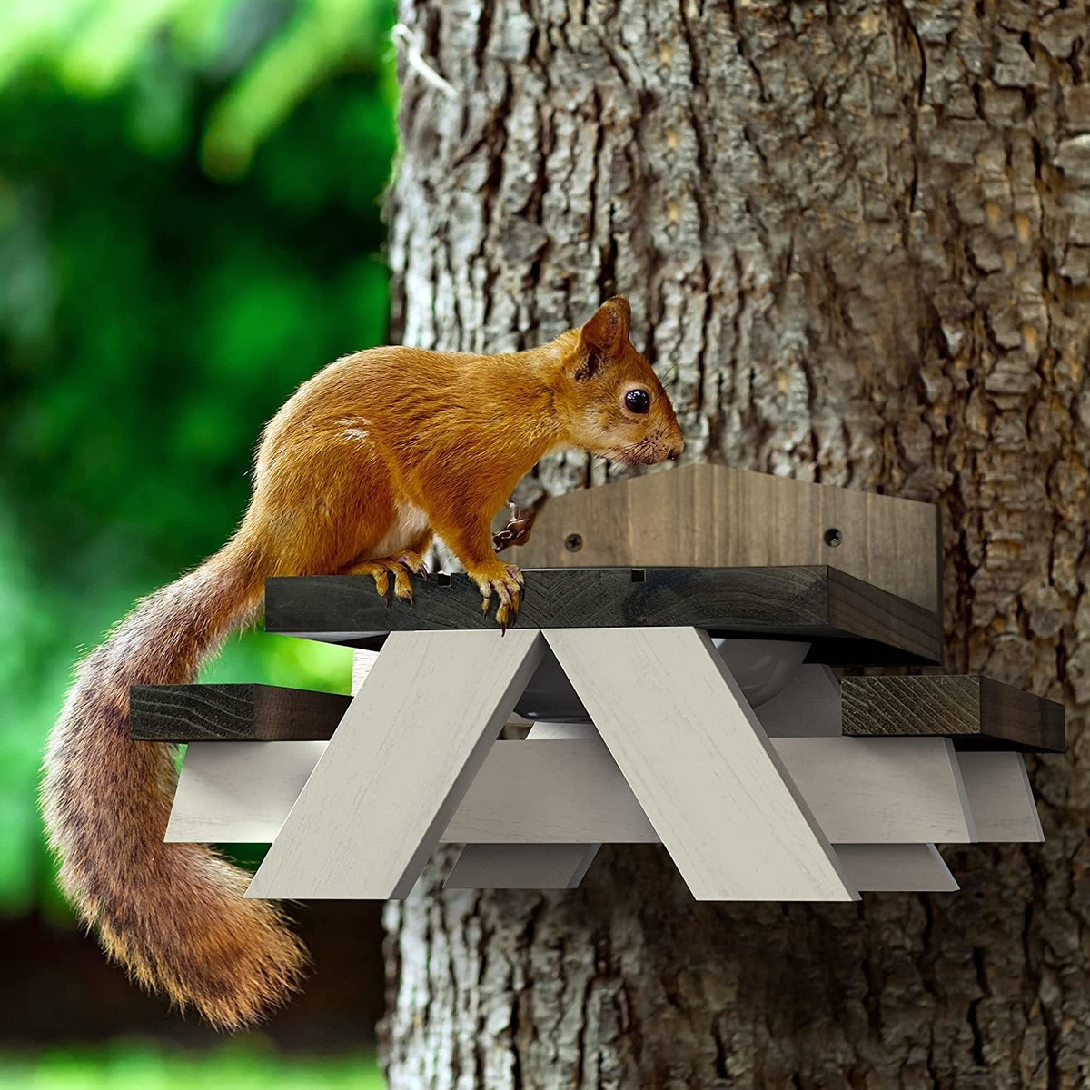 Especificaciones: Mesa De Picnic Con Alimentador De Ardilla Cuenco Extraíble