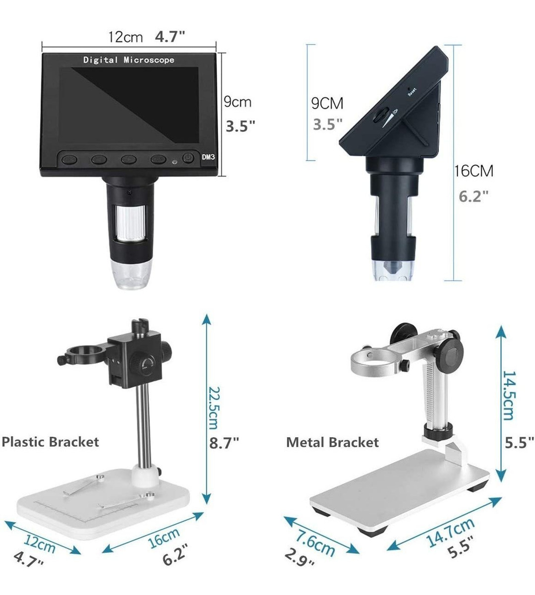 El microscopio digital tiene niveles de aumento de 50x a 1000x, que son estándar en los microscopios de mejor calidad, lo que nos permite ver los detalles más pequeños de las muestras con precisión. La precisión fina y gruesa centrándose traer muestras en el foco de forma rápida y fuertemente a ofrecer usted es una maravillosa experiencia en la exploración .; Soporte para 12 languages.The Gran pantalla LCD de 4,3 pulgadas permite ver al instante y mostrar la imagen de alta calidad con una claridad extrema. Los 5,0 megapíxeles cámara de alta tecnología se combinan con la resolución más alta definición de 1920 x 1080 pantalla LCD en el mercado, permite la captura de imágenes de alta definición y vídeo (hasta 30 cuadros por segundo) y se guarda en la tarjeta MAX 64G TF (no se incluyen). ; El microscopio también ayuda conecta con el PC mediante un cable USB o un visualizador a través de HDMI. Soporte de Windows XP, Vista, Win7 / 8/10, Mac 10.5 o superior. Puede ampliamente utilizar este dispositivo para el examen de la joyería, plantas, insectos, monedas, sellos, antigedad, tarjetas de circuitos, componentes electrónicos, textiles, impresión, la ayuda lectura, la enseñanza de la ayuda y así sucesivamente .; la cámara cuenta con microscopio de larga duración, de intensidad variable 8 luces LED ajustables, lo que permite establecer el nivel deseado de iluminación, permitirá lograr el mejor efecto visual y la claridad de visión óptima en todo tipo de medio ambiente. Construido en una batería de litio de 2000 mAh soporta hasta 5 horas de tiempo de trabajo continuo .; Microscopio LCD digitales tienen un estante lisa y sólida, la de arriba a abajo el botón de rotación permite ajustar la distancia de observación convenientemente para lograr la mejor claridad visual. En combinación con la gran base estable, las observaciones se hacen más estable y precisa y se reduce agitando y manteniendo su muestra en el foco persistente. Color: tipo abrazadera de elevación del soporte-DM3