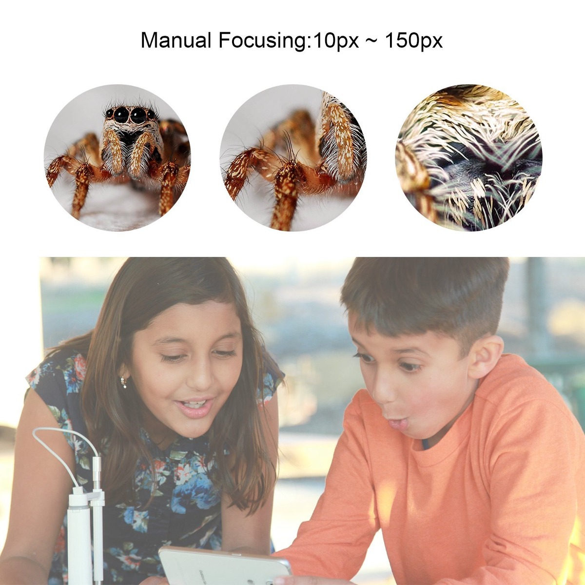 Esta cámara inteligente y versátil de vídeo Wi-Fi adecuado para cualquier IOS, androide, sistema de ventanas; El microscopio enfoque cuenta con 150: 1 zoom para una mirada cercana amaing 1,0 megapíxeles del sensor CMOS con un rango de enfoque de 10 mm a 500 mm, captura y guarda las imágenes de alta resolución y vídeos; Mini y lightweith para llevar, incluyen dos clips en la bandeja para contener temas para su visualización. Viene con 4 accesorios que pueden ser de ayuda en la inspección de la oreja, la piel, la nariz y los dientes, también se puede visualización sello batany la piel del insecto, IP67 resistente al agua; Foucs no es sólo una herramienta de aprendizaje para sus hijos, pero también podría ser un juguete para encontrar un world. diferentes útiles y microscopio inalámbrico portátil divertido, ideal para estudiantes, coleccionistas, los probadores, y cualquier persona interesada en explorar el mundo microscópico; Contenido del paquete: ScopeAround inalámbrica Cuerpo (5,9 * 2,34 * 1.4inch), Enfoque microscopio de sonda (7,41 * 5,9 * 1.7inch), cable micro USB, Accesorios, Manual de usuario, Garantía 12 meses Adicional Filtrado Todos nuestros productos estan en inglés SKU 11111759658