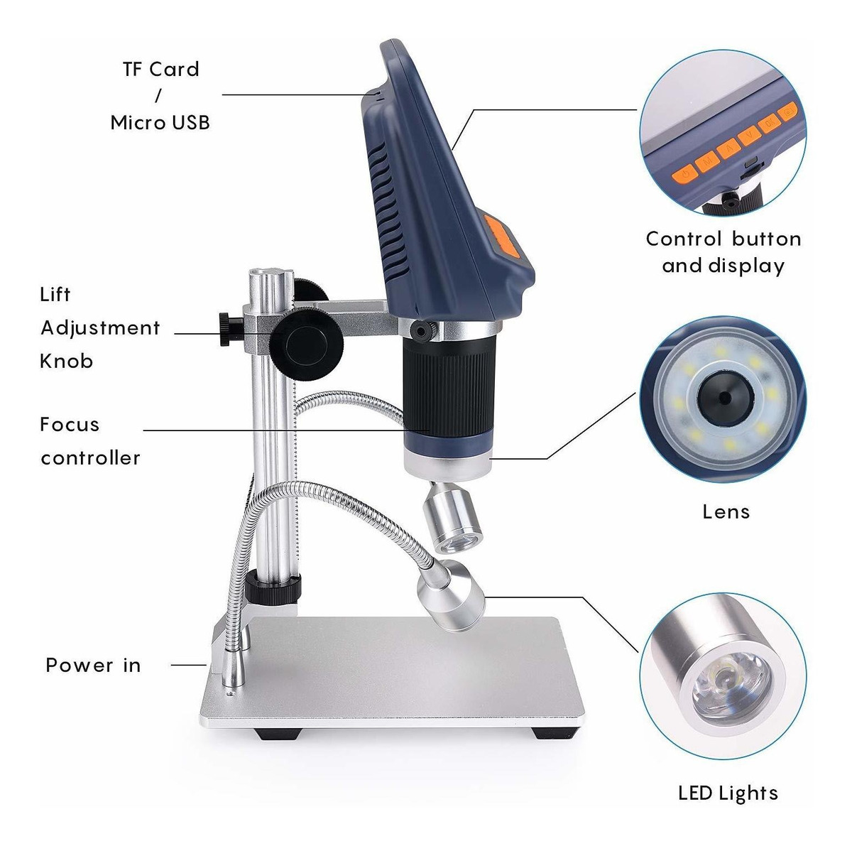 ¿¿ Fácil usando Pasos: 1. Encienda el interruptor de encendido para encender el microscopio. 2. Coloque el objeto en la base. 3. Retire la cubierta protectora de la lente. 4. Gire la polea para ajustar la distancia de enfoque con la mano izquierda. 5. Gire la rueda de ajuste de la iluminación en la parte delantera (o encender las luces de relleno por el interruptor) para ajustar el brillo con la mano derecha. 6. Observe la pantalla hasta que se ajusta a la imagen que desea .; ¿4.3 pulgadas gran pantalla LCD de alta definición¿: La gran pantalla LCD incorporada le permite ver al instante y ajustar la imagen rápida, haciendo que su observación directa. Nunca necesite conectar cualquier dispositivo de complejos y de retardo. pantalla 1080P / 720P también muestra detalles exquisitos y delicados imágenes .; ¿Alta 10x-220X de ampliación¿: Gran ampliación puede utilizarse ampliamente, tales como placas de circuitos electrónicos manintance, niños inspección de la educación, la observación biológica, uso médico, la inspección de la joyería, textiles inspección industrial, biológica y así sucesivamente .; ¿Añadido dos luces de relleno¿: Además de los 8 luces LED en la lente de un microscopio, también hemos añadido dos de alta intensidad llenar luces en ambos lados de la base. Pulse el interruptor para encender la luz y ajustar el brillo según sea necesario. control remoto añadido también le permiten tomar fotografías (en vídeos), grabar vídeos, acercar y alejar la imagen .; Ampliamente ¿Soporte¿: el apoyo microscopio digital de Windows XP / Vista / Win7 / Win8 / Win10 (No es compatible con Mac.). imágenes producidas se pueden transferir fácilmente a un PC monitor.It también apoyan la tarjeta SD máximo 32D. NOTA: Este apoyo microscopio de Windows XP / Vista / Win7 / Win8 / Win10 (No es compatible con Mac), y la necesidad de descargar AMCAP de Google, o envíe un correo a nosotros.