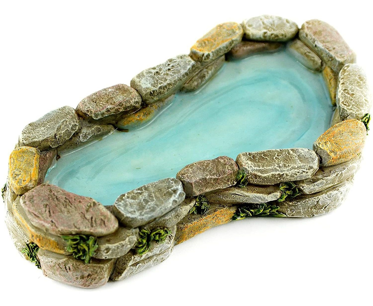 Hecho de material de resina; Estanque de piedra; Incluye 1 unidad; Medidas 5. Tamaño: 5.0 x 3.0 x 1.0 in; Perfecto para un jardín en miniatura Midwest designs is based on the fundamental rule that the customer is the most important part of our business. We strive to meet your needs and are happy to help you find the products Youre looking for. We are proud to present our newly released garden collection that features a beautiful assortment of hand crafted miniature garden furniture and accessories. Take a look at this pond Which are a great addition if your planning on making your own miniature garden. This item features a stone Pond that is made out of resin material and measures 5. 5 x 3 x 1 in size. Todos nuestros productos estan en inglés SKU 15092130215