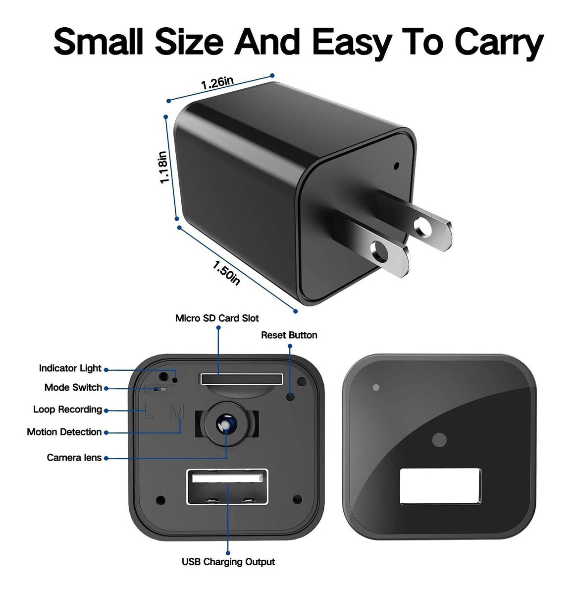 DETECCIÓN DE MOVIMIENTO: LA MINI CÁMARA ESPÍA INTEGRADA CON SISTEMA DE SENSOR DE MOVIMIENTO. CUANDO SE DETECTA MOVIMIENTO, LA CÁMARA OCULTA COMENZARÁ A AUMBAR AUTOMÁTICAMENTO CON VÍDEO FULL FULL 1080P. Esta Cámara Activada por Movimiento AHORRARÁÁ MÁS ESPACIO EN LA TARJETA DE MEMORIA.; Grabación en Bucle: La Cámara Espía Mantendrá La Grabación y Sobrescribe Los Archivos Más Antiguos Cuando La Tarjeta Esté Llena. TODO LO QUE ESTÁ GUARDADO ES EL ÉLTIMO VÍDEO.; Pequeño y potence: ES UN PEQUEÑO CARGADOR DE TELÉFONO Y TAMBIÉN UNA MINI CÁMARA ESPÍA. Pede Cargar SimulánEmente El Teléfono y Grabar Vídeo Full HD 1080p. PUEDES LLEVAR LA CAMARA CARGADER USB A Cualquier Lugar. ESPIA COSAS PARA ESPÍAS REALES.; Fácil de USAR: La Cámara Ocuta Incorpora Una Tarjeta Micro SD (NO INCLUIDA) Y CONÉCTALA A UNA TOMA DE CORRIENE, LA CÁMARA COMENZARÁ A Grabar de Immediato. Fácil De Configurar La Hora, sin heno NECESIDAD DE VOLVER A CONFIGURAR.; Más Oculta y Segura: Las Cámaras Ocultas para la Seguridad del Hogar. NO FUNCIONA CON LUCES, Y NO REQUIRERE WIFI. Atrapa Trampas, Fraude Y Ladrones. Vigila A Los Empleados, Clientes, Niñeras, Y Cuidadoros en Casa, Trabajo, Oficinas, Hoteles, etc. La Cámara Espionaje Oculta SERÁ TU ELECCION MÁS SABIA! Diseñado discretamente sin sonidos e indicadores. Cuando obtiene la Cámara Espía, Vigilar Vigilar Eficazmenta A TU PARAJA, NIÑOS, NÑADERAS, PADRES ANCIANOS O EMPLEADOS SIN QUE ELLOS LO SEPAN. Y La Cámara Espía Mejor Parte: La Cámara Cargador No hay Software Requiere Adicional O Conexiones Wi-Fi Para Funcionar. ES UN MUY BUEN EQUIPO DE ARTILUGIOS DE ESPÍA CAMS. Todos nuestros productos estan en inglés SKU 21072107181