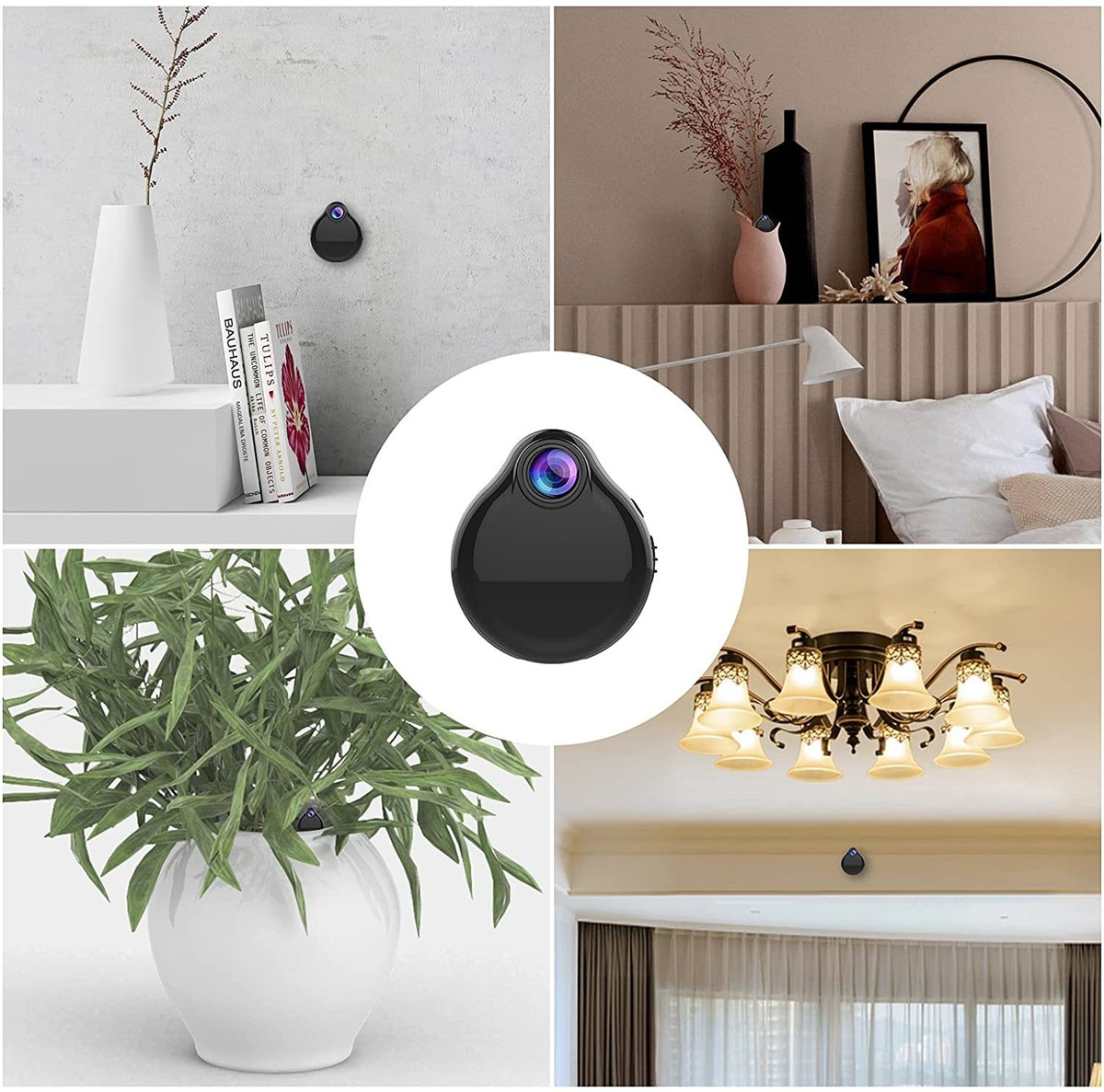 Mini cámara WiFi 2021 con aplicación para teléfono: H13 es una mini cámara espía real Full HD 1080P con lente gran angular de 120 que te ofrece una escena más amplia que nunca. Y su tamaño especial y diseño de lente sobresaliente te permiten capturar imágenes de forma fácil y discreta. Cuando la cámara espía H13 está conectada a WiFi (solo 2.4 GHz), puedes ver video en directo en la aplicación desde cualquier lugar del mundo.; Detección de movimiento: la pequeña cámara USB soporta la activación de movimiento y comienza a grabar automáticamente después de detectar el movimiento dentro de 16 pies. Una vez detectado un movimiento, la minicámara espía enviará notificaciones push con videos a tu teléfono. Puedes iniciar sesión en la aplicación para ver lo que está pasando en tiempo real y nunca preocuparte por perder algo importante.; Cámara de visión nocturna Full HD de 1080P: excelente lente de cámara inteligente HD graba videos nítidos de 1080P y 720P, nuestra cámara secreta graba video en una excepcional HD de 1920 x 1080P a 30 marcos, lo que te permite ver y monitorear la situación en casa, oficina u otras escenas. Con 6 avanzadas luces LED infrarrojas de visión nocturna, esta mini cámara te da una visión clara de todo en condiciones de poca luz e incluso oscuridad total, y las luces IR no son visibles al grabar.; Cámara de vigilancia de grabación en bucle: la cámara es bastante pequeña (1,5 horas de duración de la batería incorporada), es perfecta como cámara de seguridad inalámbrica para el hogar o una cámara de niñera/mascota/monitor de bebé. La forma de gota muy elegante y el ancho de solo 1.5 pulgadas (unos dos dedos) hace que sea fácil de ocultar para la grabación en bucle.; Cámara de seguridad 24/7 de fácil instalación: puedes conectar fácilmente la cámara oculta WiFi a la aplicación a través de punto de acceso WiFi, y la mayoría de las personas pueden configurarla en 5 minutos. Además, esta cámara espía inalámbrica también está equipada con una tarjeta de memoria de 32 G para su uso, no hay necesidad de comprar por separado. Conveniente y eficiente es nuestro principio de servicio. Todos nuestros productos estan en inglés SKU 91221076413