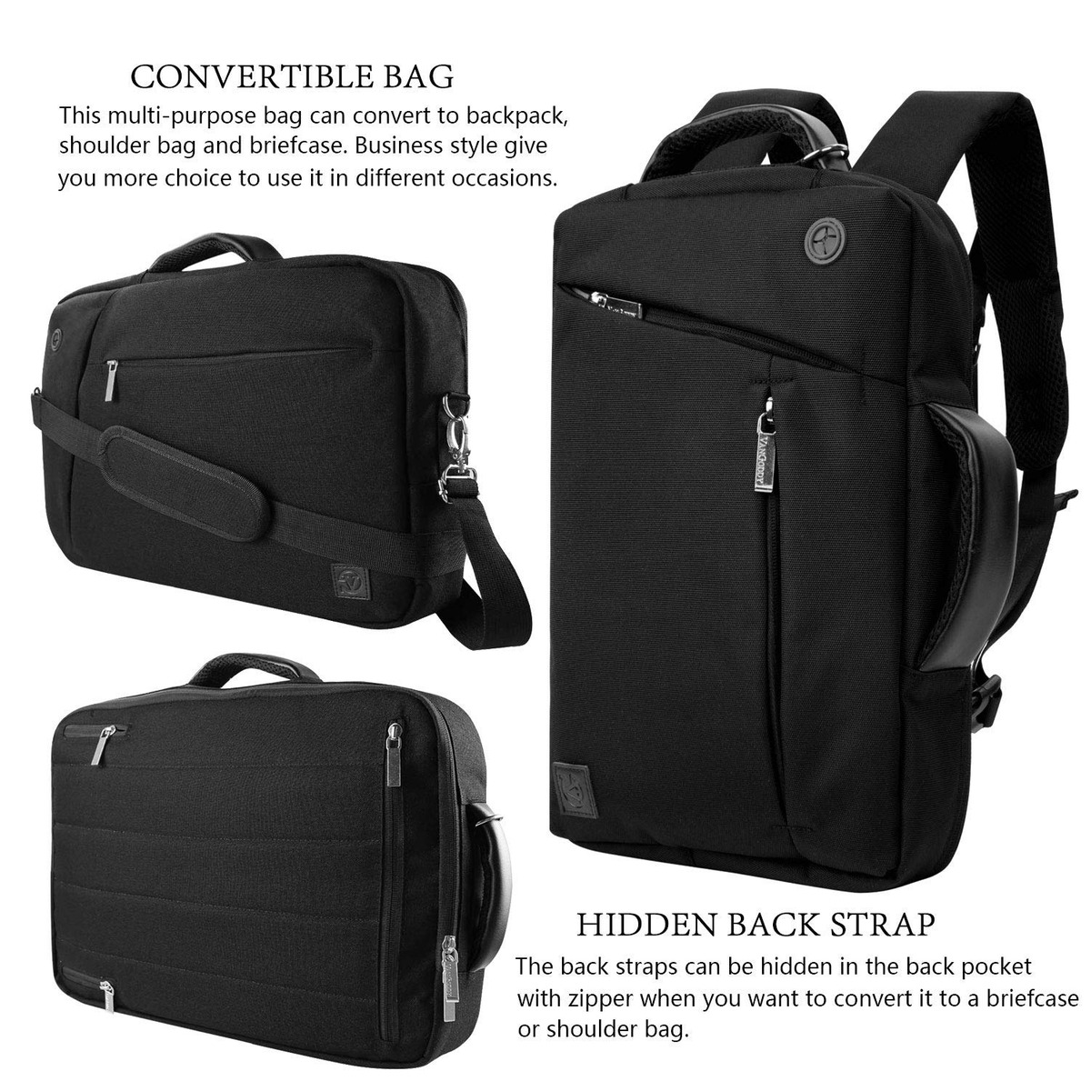 Roxie convertible híbrido multifuncional portátil 3-en-1 bolsa es una bolsa versátil adaptable que ofrece fantástica utilidad. Llevarlo como una mochila, o como una bolsa de mensajero, o llevarlo como una maleta a medida que viaje al trabajo, la universidad o de viaje. La bolsa versátil es delgado y compacto, por lo que es la bolsa de transporte ideal de sus pertenencias. Gran capacidad de almacenamiento permite espacio para laptop, tableta, iPad, libros, documentos, cuadernos, cargadores, banco de la energía, cables, auriculares, y otros elementos esenciales.