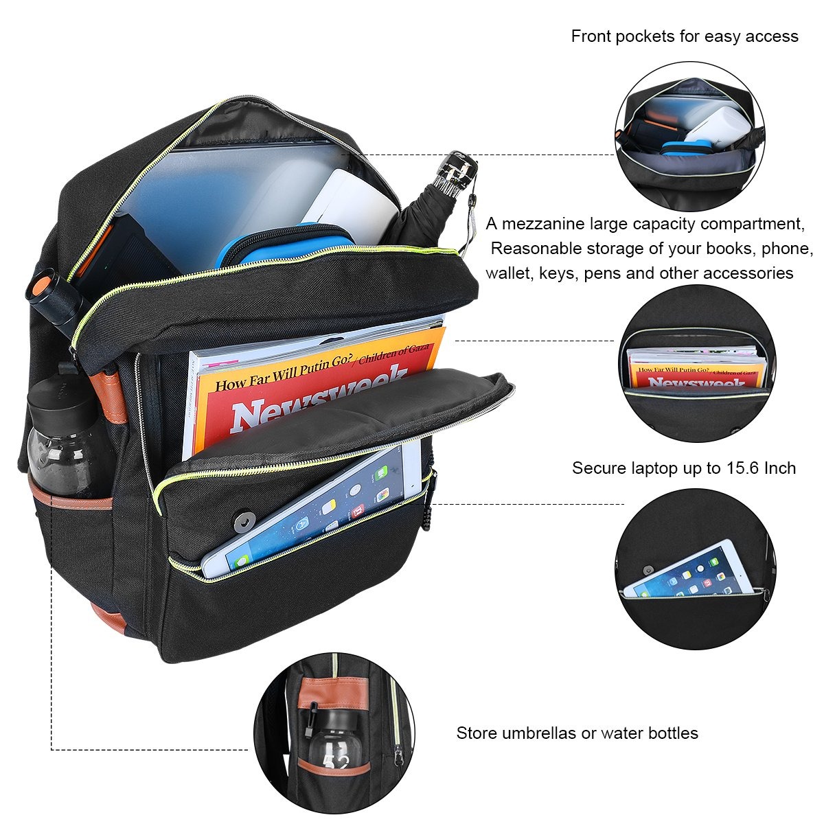 Especificaciones: Mochila Para Portátil De La Vendimia, Bolso De La Universida