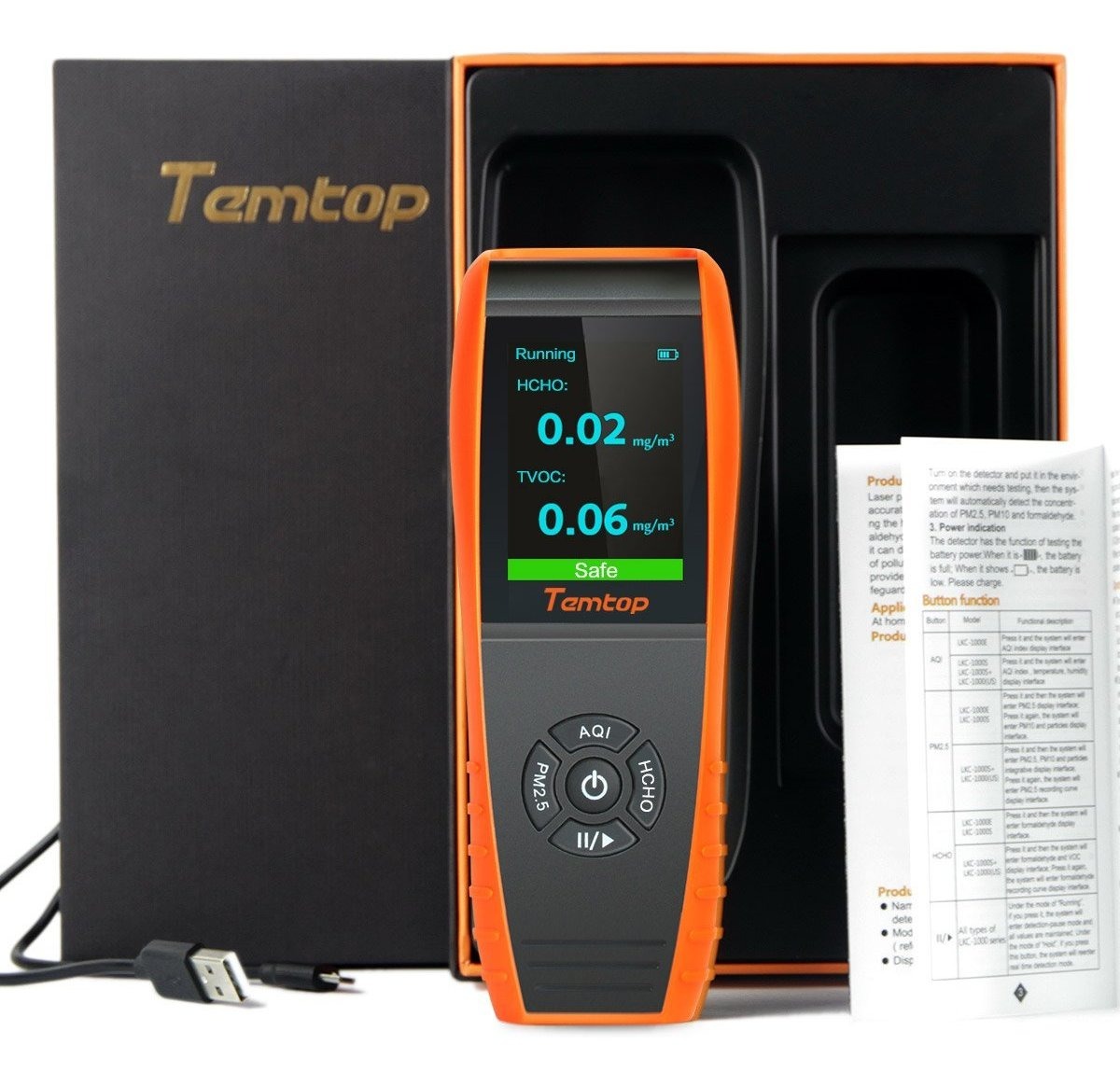 La última calidad 9-IN-1 de aire detector mide PM2.5, PM10, partículas, HCHO (formaldehído), TVOC, AQI, la temperatura, la humedad y la función de histograma .; La nueva función de histograma puede reflejar los cambios en PM2.5 directamente de las últimas 12 horas .; Temtop sensor láser de partículas de tercera generación avanzada tiene una vida útil de hasta 20.000 horas. En combinación con el algoritmo de optimización de enjambre de partículas único, que hace que la medición de partículas más precisa y estable .; Los sensores electroquímicos precalibrados se capturar con precisión moléculas de formaldehído acompañados por la función de detección cubriendo un amplio rango de contaminantes orgánicos .; gran pantalla TFT y visualización rica que sea clara y fácil de leer los datos, incluso con luz indicadora de batería para ayudarle a comprobar la batería en cualquier momento Todos nuestros productos estan en inglés SKU 6081938190