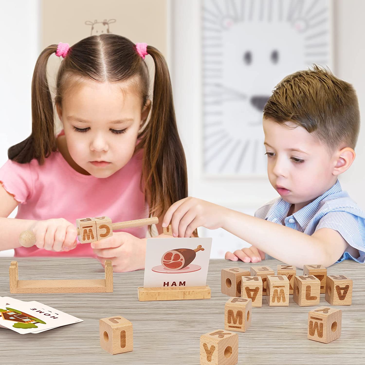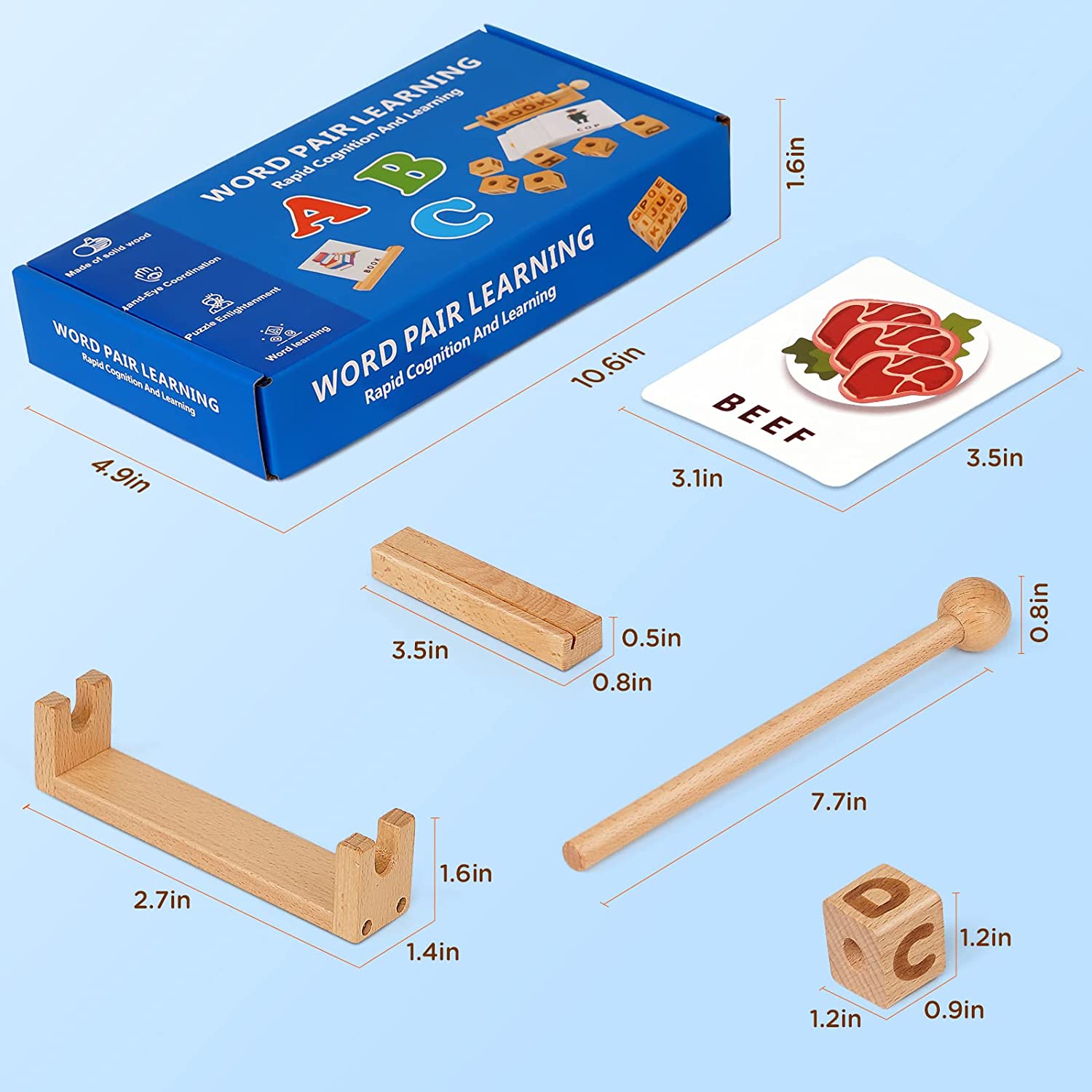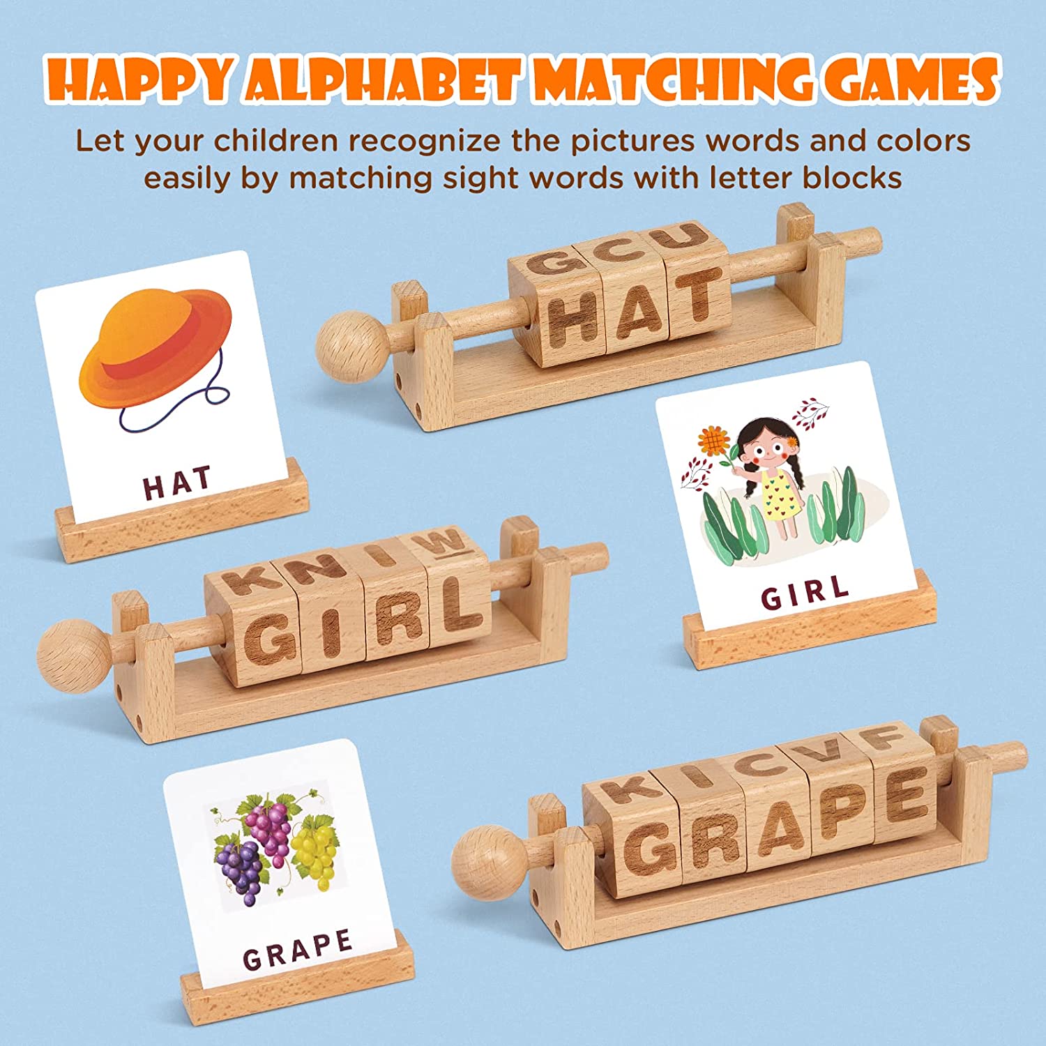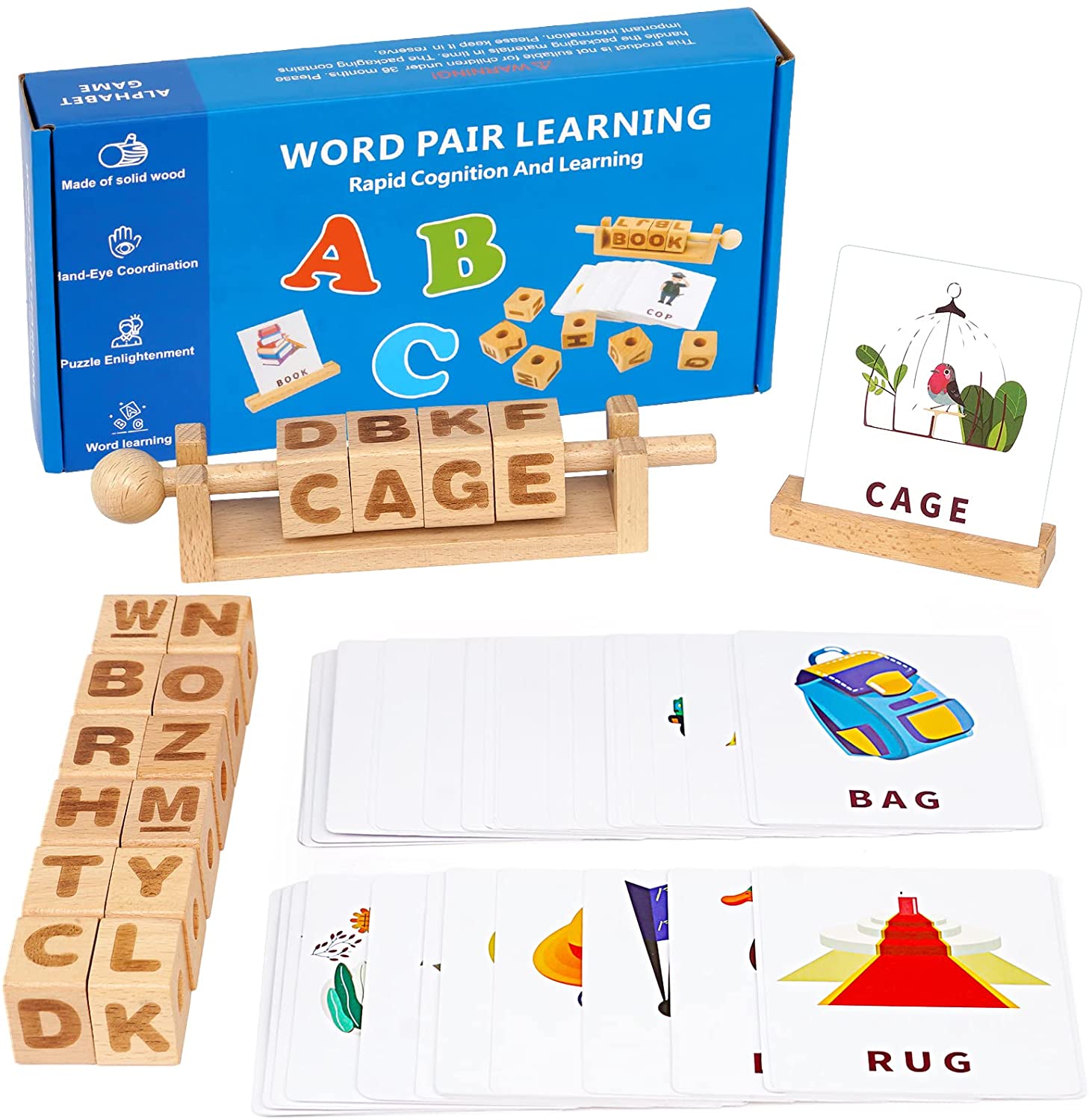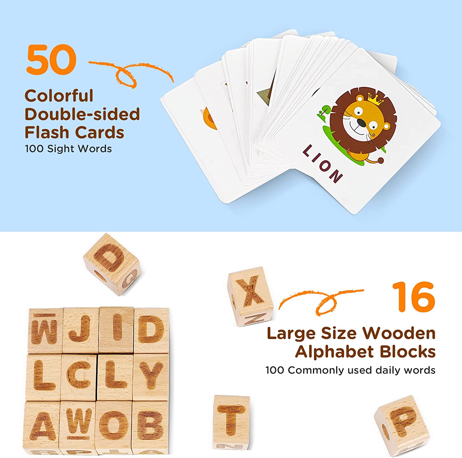 Specification: Montessori Toys Kindergarten ABC Aprendizaje a juego y conteo Bloques de alfabeto de madera Palabras de vista Tarjetas flash Letras Juego de ortografía fonética, Educación preescolar para niños pequeños de 2 3 4 5 6 7 8 años
