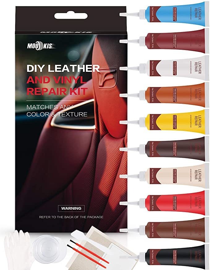 Reparar cualquier tipo de piel Textura – Este conjunto de kits de reparación de cuero son perfectas para trabajos rápidos y fáciles de reacondicionamiento de traer su jirones, desgarrada, agrietada, y descamación del cuero y vinilo sillones, sofá y asientos de coche de vuelta a su estado original, simple y fácil!; Tres pasos para restaurar – En primer lugar utilizar un paño limpio para eliminar la suciedad y el aceite mirada sobre el cuero, segundo uso del color adecuado para que coincida con el color de la misma con que el cuero, a continuación, aplicar el color uniforme y suavemente, espere que la pintura se seque; Emparejar cualquier color – Viene con 10 color de la botella con este kit de reparación de muebles (crema, moreno, burdeos, chocolate, nuez, blanco, negro, rojo, azul, amarillo), es fácil de mezclar el color a juego. Los papeles de textura ayudarán a restaurar la superficie de la piel como nueva. restaurar cualquier material, artificial, sintético, bycast, falso, etc; Juego para cualquier tipo de material – Nuestro kit de reparación de cuero se puede aplicar en el asiento del coche, sofá, equipaje, bolso, chaqueta, zapatos, botas de cuero, asientos del barco, etc. Se puede reparar perfectamente cualquier tipo de arañazos, rasgaduras, rupturas , corte .torn, quemar agujero, grieta, peladura en su cuero; Guardar una gran cantidad de dólares – que sólo cuesta un poco más de 15 dólares para reparar sus muebles de cuero y le caros bolsos zapatos, usted no tiene que comprar un nuevo sofá o pagar un montón de dinero para taller de reparaciones, ahorrar mucho dólares por u, disfrutan kit de reparación de cuero DIY! 1. Profesional Un kit de reparación de cuero: Mookis cuero y kit de reparación de vinilo está diseñado para reparar todo tipo de daños en el cuero y vinilo. No es necesario ir ato taller de reparaciones, que acaba de comprar y obtener la restauración profesional con nuestra kit de reparación.