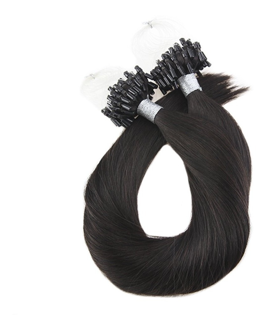 extensiones del anillo del lazo micro se pueden aplicar fácilmente con sólo unos alicates profesional: sin cola, sin calor, sin daños, fácil y segura de poner y quitar. Estas extensiones de cabello están hechas de pelo de alta calidad. Se puede mezclar de forma natural con su propio cabello. Por lo general, 100-150 hebras es suficiente para una cabeza completa. El cabello se puede lavar, encrespado o enderezado. Cabello ha sido teñido. Puede ser coloreado dos tonos más oscuros.