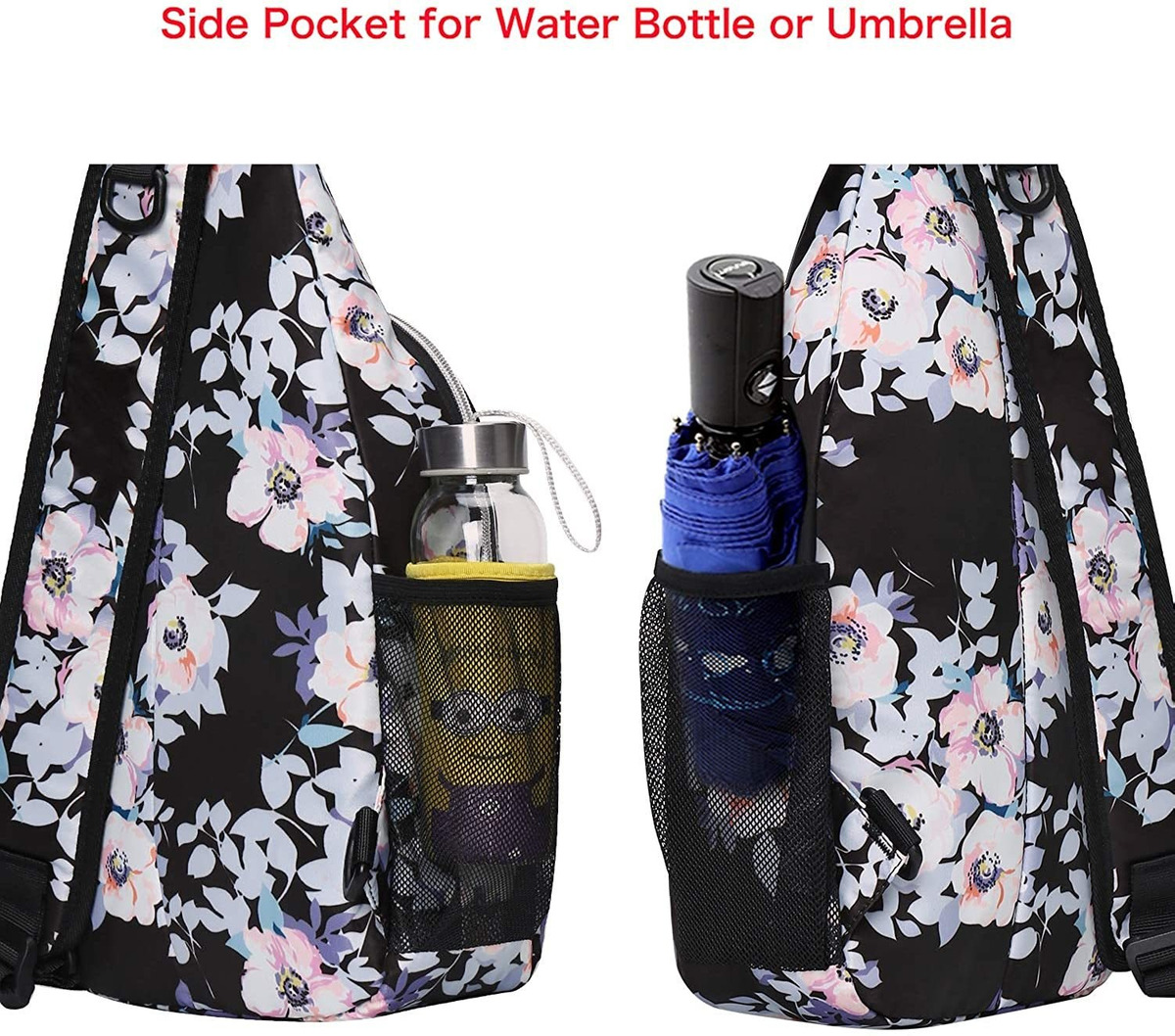 Dimensiones: 15,3 x 7,5 x 3,5 pulgadas (L x W x H). compartimento con cremallera grande es compatible con el iPad 2 020 Pro 11 (segundo), 2019 IPAD 7 10.2, 2019 IPAD aire 3 10.5, 2018 IPAD Pro 11, 2018 2017 iPad 9.7, 2017 IPAD Pro 10.5, 2019 Mini iPad 5/4/3, 2018 El totalmente nuevo Kindle Paperwhite décima generación de 2019 Samsung Tab 10.5 o S6 otras Tablas 6-11 pulgadas; uno más pequeño con cremallera para los teléfonos, powerbank, cartera o artículos diversos / viaje al aire libre. 2 bolsas de malla en cada lado de la botella de agua (hasta diámetro mayor de 2,5 pulgadas) .; área de almacenamiento de múltiples funciones, compartimento accessary con los bolsillos funcionales para mantener el cable de alimentación, el ratón, libros, documentos, etc. Se puede utilizar como bolsa de mensajero / bolso de hombro / crossbody mochila / mochila ocasional / bolso de la honda / bolso del pecho / bolsa de viaje / o trabajar bolso del negocio, conveniente para la oficina, la escuela, al aire libre, negocios y otras ocasiones .; correa de hombro mochila Flexible varió de 18 a un máximo de 36 pulgadas se puede ajustar flojo o apretado. adaptarse perfectamente a su cuerpo. Dos formas de llevar: izquierda o derecha. Aliviar la presión con toma a largo plazo .; Transpirable en forma de correa acolchada y el panel posterior es extremadamente cómoda y de peso ligero, que liberará calor en lugar de acumular .; Hecho de durable poliéster repelente, agua con cremalleras de alta calidad y clip de correa durable. Nuestra bolsa es del patrón impreso. Cada bolsa será de poca diferencia debido al corte de la tela. 1 año de garantía en cada bolso de la honda. Con un diseño ergonómico, este paquete es más cómodo a bolsa en torno a que una mochila engorroso que se adapte a su cuerpo.