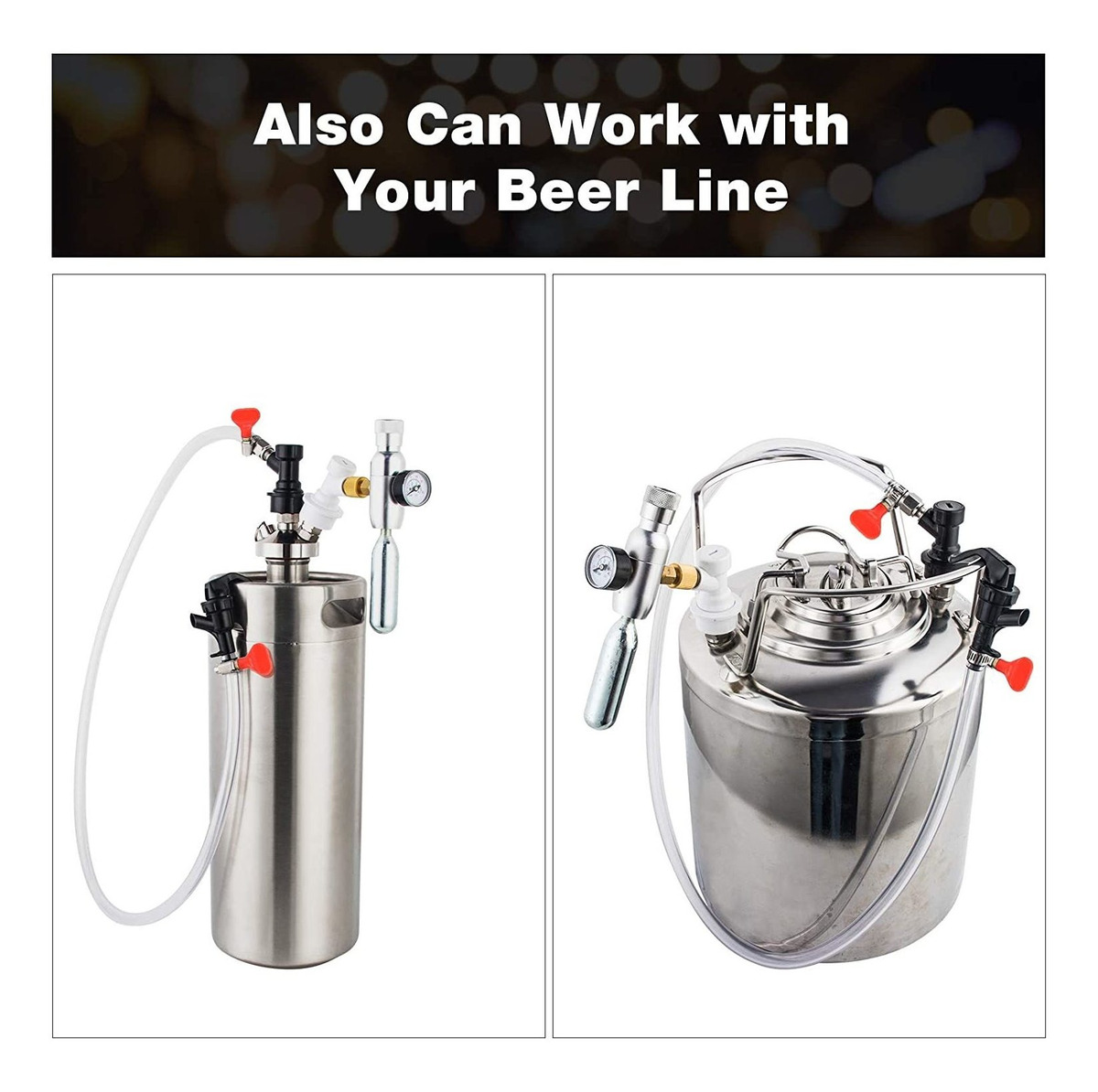 AJUSTAR presión exactamente! Agrandar Esto no es un cargador de CO2 regulado compacta, pequeña pero suficiente para dar cabida muy pequeño regulador, no hay necesidad de preocuparse por presión en el cargador demasiado o demasiado poco como el gatillo, fácil de ajustar con el mando adjusment presión, proporciona un grado de carbonatación derecho de su cerveza !; RÁPIDA DISCONNET MONTAJE Y GRANDES PARA ANTI-FUGAS! Cargador de este CO2 barril viene con un adaptador de 3/8 hilo y una cerradura de la bola de gas, se puede conectar a la manguera de gas con facilidad, la arandela interior de las fugas de gas previene adaptador de rosca , abrazaderas de manguera evitan fugas de líquidos si se utiliza este regulador con barril de cerveza y la manguera de cerveza, crea un sistema de cerveza de calidad para usted !; NO-óxido y tamaño portátil! MRbrew mini cargador del CO2 barril está hecho de aluminio anodizado único, fuertemente contra el óxido, superficie lisa facilita la limpieza, lo suficientemente pequeño para ser portátil, sin necesidad de arrastrar el tanque grande con el, puede carbonatar su bebidas cualquier momento y en cualquier lugar !; ADECUADO PARA OCASIONES VARIABLE Este regulador cargador de barril se ajusta a la 2L, de 3,6 litros, 5 litros de cerveza Growler, y es adecuado para el cartucho de CO2 de 16g, le permite servir a su cerveza de cerveza casera, café cerveza fría, agua de soda, té helado en la barbacoa, playa, lago o de días festivos, etc, trae gran conveniencia a su kegging móvil !; 100% TEMAS POR VIDA SOLUCIÓN PARA USTED Cada MRbrew Mini regulador de CO2 cargador de barril con el respaldo de inmejorable calidad, fiable, de confianza producto, vamos a resolver sus problemas sin condiciones si no está satisfecho! Todos nuestros productos estan en inglés SKU 4032125498
