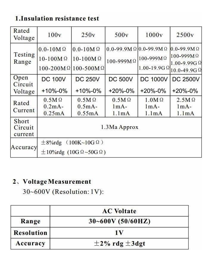 Especificaciones: Multímetro Electrónico, Probador De Resistencia De Aislamien