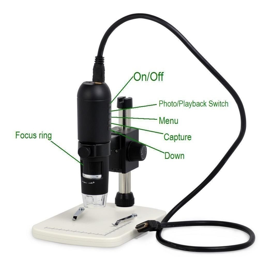Tamaño: 185 mm (L) x 33 mm (R) Esta alta tecnología, mientras que fácil de usar HDMI microscopio digital proporciona una salida de imagen nítida de 1080p directamente .; Adopta el sensor de imagen de alta calidad y lentes de microscopio de vidrio correspondiente, lo que garantiza la mejor calidad de imagen en el campo de microscopio digital .; Genera impresionante imagen de vídeo, por lo que el usuario puede compartir llena de imágenes microscópicas de alta definición con los demás con facilidad, útil para estudiantes, coleccionistas, aficionados, etc probadores para explorar el mundo microscópico, especialmente útil para los profesores de la escuela compartan la imagen microscópica con los estudiantes .; Es compatible con la captura de fotos y almacenamiento de la tarjeta Micro-SD; también puede funcionar en PC (función de medición mientras se trabaja en la PC) .; Somos un miembro de HDMI certificado, asegurando que hemos pagado regalías a la organización y podemos utilizar HDMI legalmente. Adicional Filtrado Todos nuestros productos estan en inglés SKU 11111736506