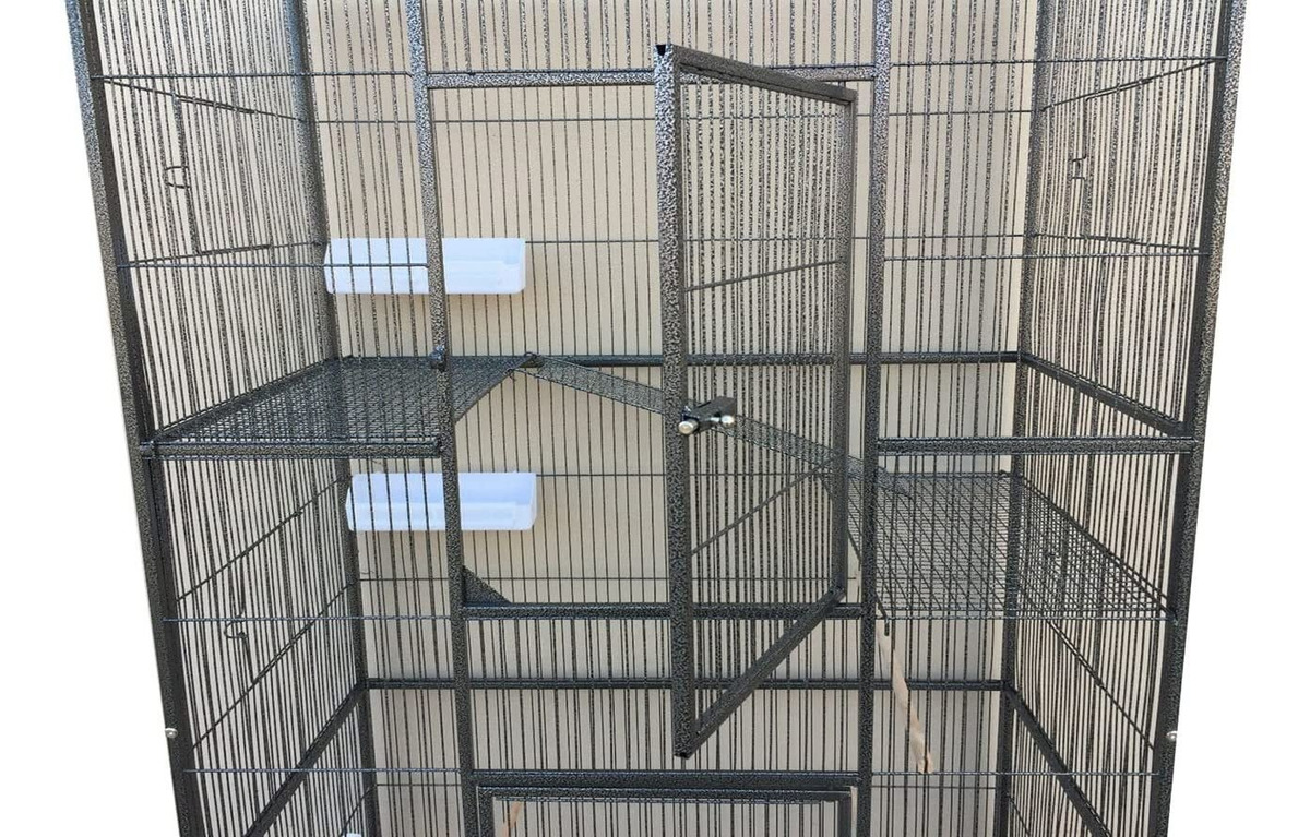 ESPACIOSA Y DURAADERA: LA CONSTRUCICCIÓN DEL MARCO DE HIERRO FORJADO ES FÁCILO DE MONTAR CON DOS PUERTAS FRONTAS GRANDES Y PUERTAS CON BISAGRAS DE SEGURIDAD DE METAL Mejoradas Son A Prueba de Escapes. ESPACIAMENTO DE BARRA APRETADO DE 0.5 IN: INSEÑADO PARA ALBERGAR UNA AMPLIA VIRAITIAD DE LOS PEBRES PEQUEÑOS, DESE TAMAÑOS DE BEBÉ ASTA ADULTIVOS; Evita Escape y Atascos.; TODO DE METAL, LIBRE DE MORDIDASLA JAULA SE PODER DE SOPORTE; Rejilla De Metal Inferior Con Espacia De Alambre De 0.5 En Y Bandeja De Plástico Se Desliza Hacia Fuera Para Una Limpieza Cómoda.; El Estante Inferior Se Peder Utilizar Para Almacenar Juguetes, Golosinas y Más. Tazas DOBLE DE PLÁSTICO PARA AGUA Y ALIMENTOS, PERCHAS DE MADERA ESTÁ INCLUIDAS PARA LOS ANIMALES VOLADORES.; La Jaula Viene con Rampas y Estantes de Alambre Cruzados de 0.5 in. Seguro Para Patas de Animales Pequeños. Perchas de Madera de Pie Para Criaturas Voladoras Como Deslizadores de Azúcar.; Extra Grande: 31 pulgadas de largo, 18 pulgadas de ancho, 70 pulgadas de alto. CONPACIADO DE ALAMBRE APRETADO DE 1/2 PULGADA. Solo La Jaula: 30 pulgadas de largo, 18 pulgadas de ancho, 52 pulgadas de alto. SOPORTE SOLO: 32 PULGADAS, 18 PULGADAS DE ANCO, 18 PULGADAS DE ALTO. Tamaño Extra Grande: 30.9 en De Largo X 18.0 en de profundidad x 68.0 en Todos nuestros productos estan en inglés SKU 10032235758