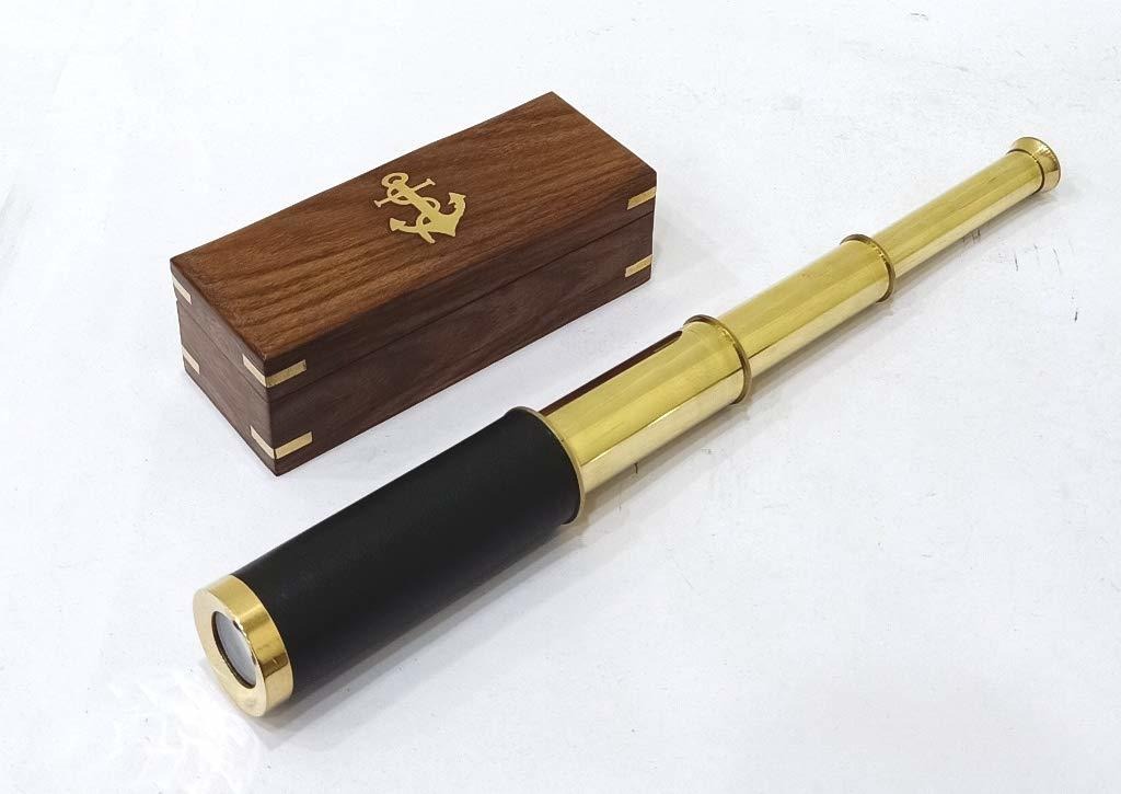 Un aumento de 10x; óptica de vidrio para una visión clara (no lentes de plástico); Totalmente funcional se centra catalejo y magnifica; Dimensiones: 15″ L x 2″ W x 2″ H; Exclusivamente Vendido por Thor Instruments Co. Características: el catalejo de latón -Telescope.-Pulido con óptica de vidrio cuerpo.-cuero-envuelta para una visión clara (no lentes de plástico) .- caja de palisandro macizo adornado con el catalejo de latón de anclaje emblem.-10X-Magnification. completamente funcional se centra y se magnifica. Dimensiones: lentes -Objetivo: 1,18 » Dia (30 mm de diámetro) .- Colapsar: 5″ Dia.-Dimensiones totales: 2″ H x 2″ W x 15″ D, 4 lbs. Colección: Colección de Capitán caballero. Todos nuestros productos estan en inglés SKU 10101920005