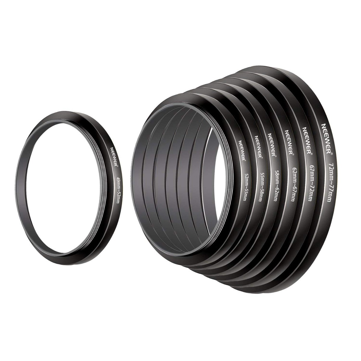Especificaciones: Neewer 7pcs 49mm-77mm Filtro Paso Anillos Pisando Sistema De