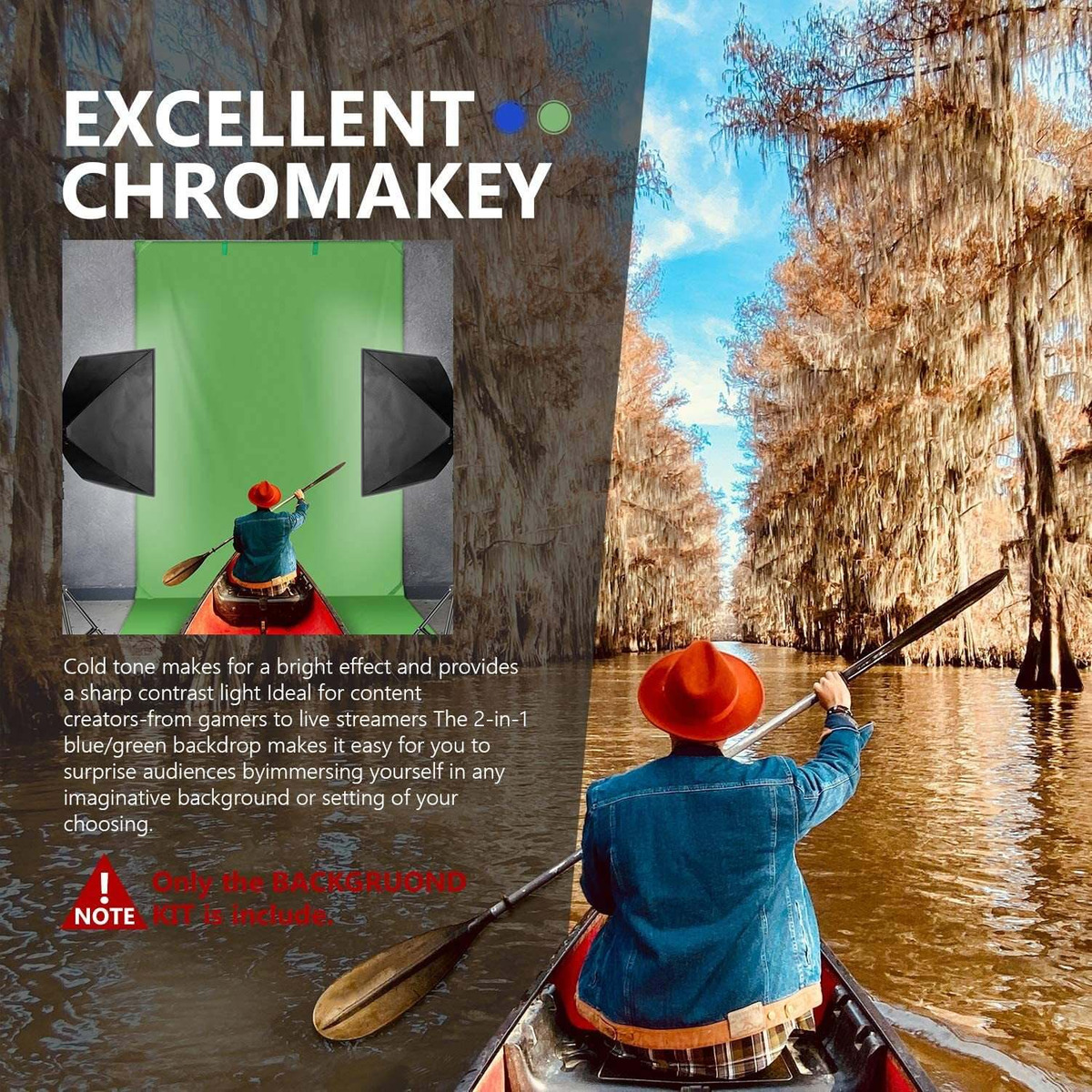 El kit Incluye 2 Fondos y Cada telón de fondo Tiene dos Lados y Dos colores (uno es verde y azul, El Otro es fondo negro / blanco).