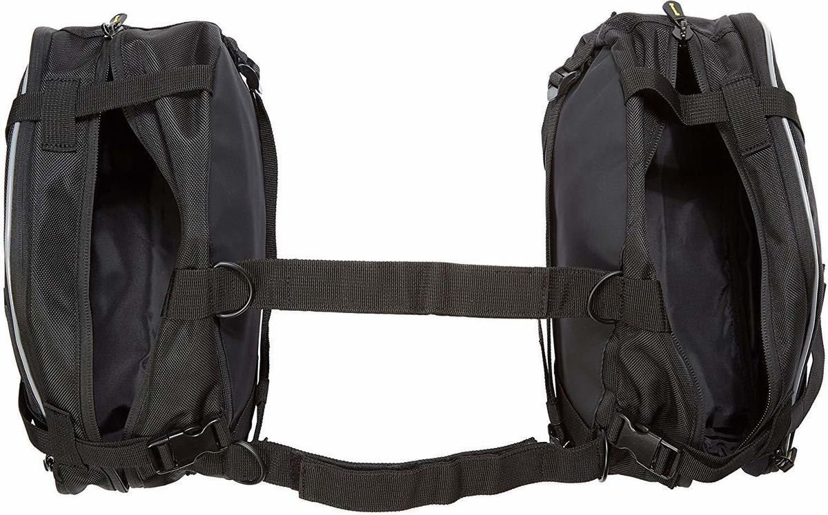 Hecho de UV de alta calidad resistente al agua tratada y nylon 1680D Tri-Max balístico con ribetes reflectantes y el acento de la visibilidad nocturna, el RG-020 dual del deporte de la motocicleta Alforjas son perfectos para la mayoría de Aventura, Dual-Sport, y Enduro motocicletas; Cuenta con un compartimento principal expandible para almacenamiento adicional, una bolsa de herramientas / bolsillo debajo compartimiento principal con acceso desde el exterior, con cremalleras en espiral inversa a fin de protegerlo del polvo y la suciedad, y el caucho revestidos tiradores de cremallera de gran tamaño para una fácil operación con guantes; montajes con correas auto-retráctiles pesados ¿¿y hebillas de liberación rápida con un anti-slip / rascan panel de protección para mantener su pintura / plásticos que parece grande; Dimensiones del producto: 14.5 “L x 9” W x 6 “D / Ampliado: 14.5” L x 9 “W x 8” D; Sostiene 12 litros por secundarios / 15 litros expandidos por lado Tamaño: Un tamaño | De color negro