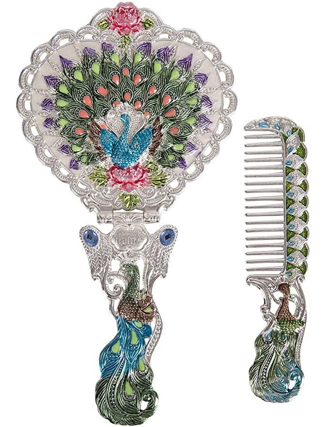 Material: pintado de metal .; Información Sobre el Tamaño: El juego de peine de espejo retro mide 7,9 x 4,3 en, peine 5,9 x 1,3 pulg .; Detalles del Artículo: Juego de peine de espejo de Estilo vintage, INCLUYE UN espejo de mano y Un peine. Espejo en forma de Corazón, Sofisticado patrón de pavo real, plegable. Excelente artesanía, la ONU complemento Para Tu Gran Conjunto de cosméticos. El espejo se Coloca Sobre superficies plegadas. El Tamaño del Mango y El hijo tacto Agradables para agarrar. Fácil de Ajustar el ángulo MIENTRAS SE pliega .; Ocasiones adecuadas: ADECUADO para comprobar v y APLICAR maquillaje .; Tiempo de Entrega: envío gratuito por USPS en 5-10 días laborables si eliges Envío Estándar Color: Plateado