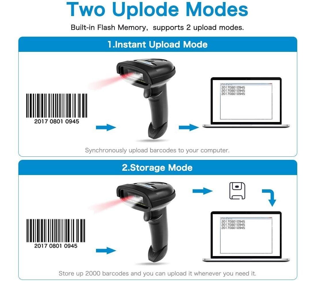 1. Bluetooth CCD del escáner lee todos los códigos de barras 1D directamente fuera de la pantalla LCD de los ordenadores o dispositivos móviles y también lee los códigos de barras mal impresos o dañados.