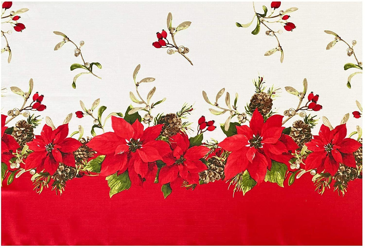 Especificaciones: Newbridge Blooming Poinsettia – Mantel De Tela Navideña De D