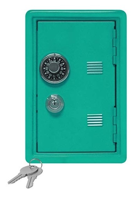 8 pulgadas de alto x 4,7 pulgadas de ancho x 3,9 pulgadas de profundidad; miniatura Caja fuerte del metal incluye una sola cerradura de combinación dígitos, 2 llaves, ranura de monedas y el cajón de monedas; pies acolchado para proteger el escritorio o aparador; Un armario banco de moneda segura hace un gran regalo para los niños y niñas; PELIGRO DE ASFIXIA Contiene piezas pequeñas; No se recomienda para niños menores de 3 años de edad Enseñar a sus hijos a ahorrar dinero con los de un niño moneda Banco Armario de seguridad. Los niños pueden usar la ranura de monedas en la parte superior y el cajón interior se cogerlo! almacenamiento extra a continuación significa que hay espacio para más “objetos de valor”, como dinero en efectivo o dulces. La combinación de la cerradura y la llave se utilizan conjuntamente para guardar sus pertenencias seguro. Los niños podrán disfrutar de este regalo divertido y funcional. dimensiones del armario son 7” h x 4,7” w x 3,9” d. PELIGRO DE ASFIXIA Contiene piezas pequeñas; No se recomienda para niños menores de 3 años de edad Todos nuestros productos son de Estados Unidos SKU 8111808544